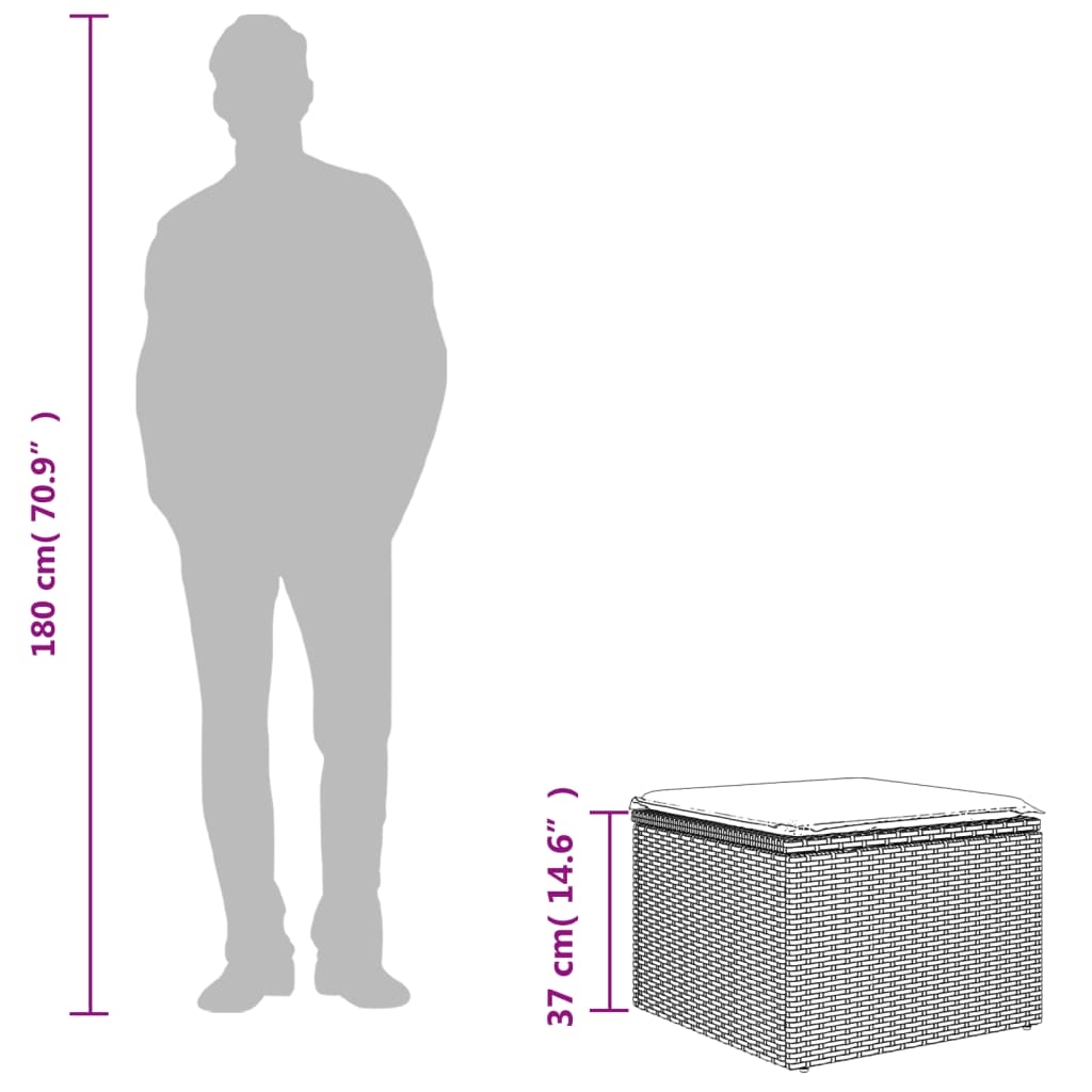 Entspanne dich und genieße die Natur auf diesem bequemen Gartenhocker! Langlebiges Material: PE-Rattan, auch als Poly Rattan bekannt, ist ein robustes, pflegeleichtes synthetisches Material, das die Optik von natürlichem Rattan aufweist. Es kennzeichnet sich durch ein geringes Eigengewicht und lässt sich einfach reinigen. Aufgrund seiner Haltbarkeit und Witterungsbeständigkeit wird es häufig bei der Herstellung von Gartenmöbeln verwendet.Stauraum mit wasserfestem Beutel: Jedes Gartensofa verfügt über ein Staufach unter der Sitzfläche, das mit einem wasserfesten Beutel zur Aufbewahrung von Kissen, Spielzeug und anderen Gegenständen versehen ist. Die Kissen sind mit Bezügen versehen und lassen sich mit Klettverschlüssen fest und sicher am Sofa befestigen.Bequemes Sitzerlebnis: Dank des dick gepolsterten Kissens bietet dieser Gartenhocker höchsten Sitzkomfort.Abnehmbarer und waschbarer Bezug: Das Sitzkissen verfügt über einen abnehmbaren Bezug, der sich ganz einfach waschen und pflegen lässt.Robuster und stabiler Rahmen: Dank des pulverbeschichteten Stahlrahmens ist das Outdoor-Möbel robust, stabil und für den täglichen Einsatz im Außenbereich geeignet. Gut zu wissen:Wir empfehlen dir, deine Gartenmöbel mit einer wasserdichten Hülle zu schützen, um lange Zeit eine ansprechende Optik aufzuweisen.