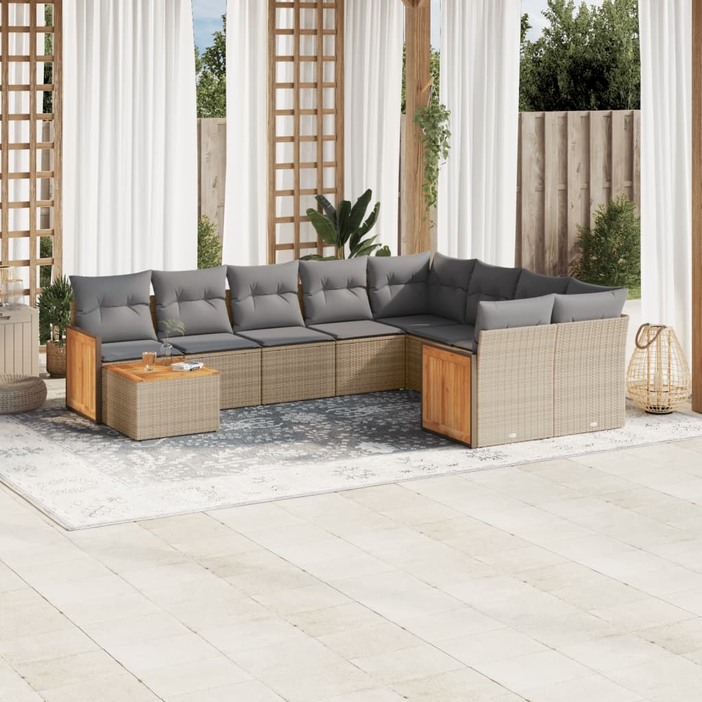 Diese Garten-Sofagarnitur ist die perfekte Ergänzung zu deinem Garten, deiner Terrasse oder deinem Innenhof. Sie bietet einen bequemen und einladenden Platz, um mit Familie und Freunden zu plaudern oder dich einfach nur zu entspannen und das Leben im Freien zu genießen. Langlebiges Material: PE-Rattan, auch als Poly Rattan bekannt, ist ein robustes, pflegeleichtes synthetisches Material, das die Optik von natürlichem Rattan aufweist. Es kennzeichnet sich durch ein geringes Eigengewicht und lässt sich einfach reinigen. Aufgrund seiner Haltbarkeit und Witterungsbeständigkeit wird es häufig bei der Herstellung von Gartenmöbeln verwendet.Stauraum mit wasserfestem Beutel: Das Gartensofa verfügen über ein Staufach unter der Sitzfläche, das mit einem wasserfesten Beutel zur Aufbewahrung von Kissen, Spielzeug und anderen Gegenständen versehen ist. Der Innenbeutel lässt sich mit Klettverschlüssen sicher und stabil an den Gartenmöbeln befestigen.Stabile und pflegeleichte Tischplatte: Dieser Gartentisch besitzt eine Tischplatte aus Akazienholz, die robust und langlebig ist und sich leicht mit einem feuchten Tuch reinigen lässt.Abnehmbarer und waschbarer Bezug: Diese Sitzkissen verfügen über abnehmbare Bezüge für einfaches Waschen und Pflegen.Modulares Design: Dank des modularen Designs lassen sich die Gartenmöbel völlig flexibel und einfach umstellen, um deinen Außenbereich ganz individuell zu gestalten. Gut zu wissen:Wir empfehlen dir, deine Gartenmöbel mit einer wasserdichten Hülle zu schützen, um lange Zeit eine ansprechende Optik aufzuweisen.
