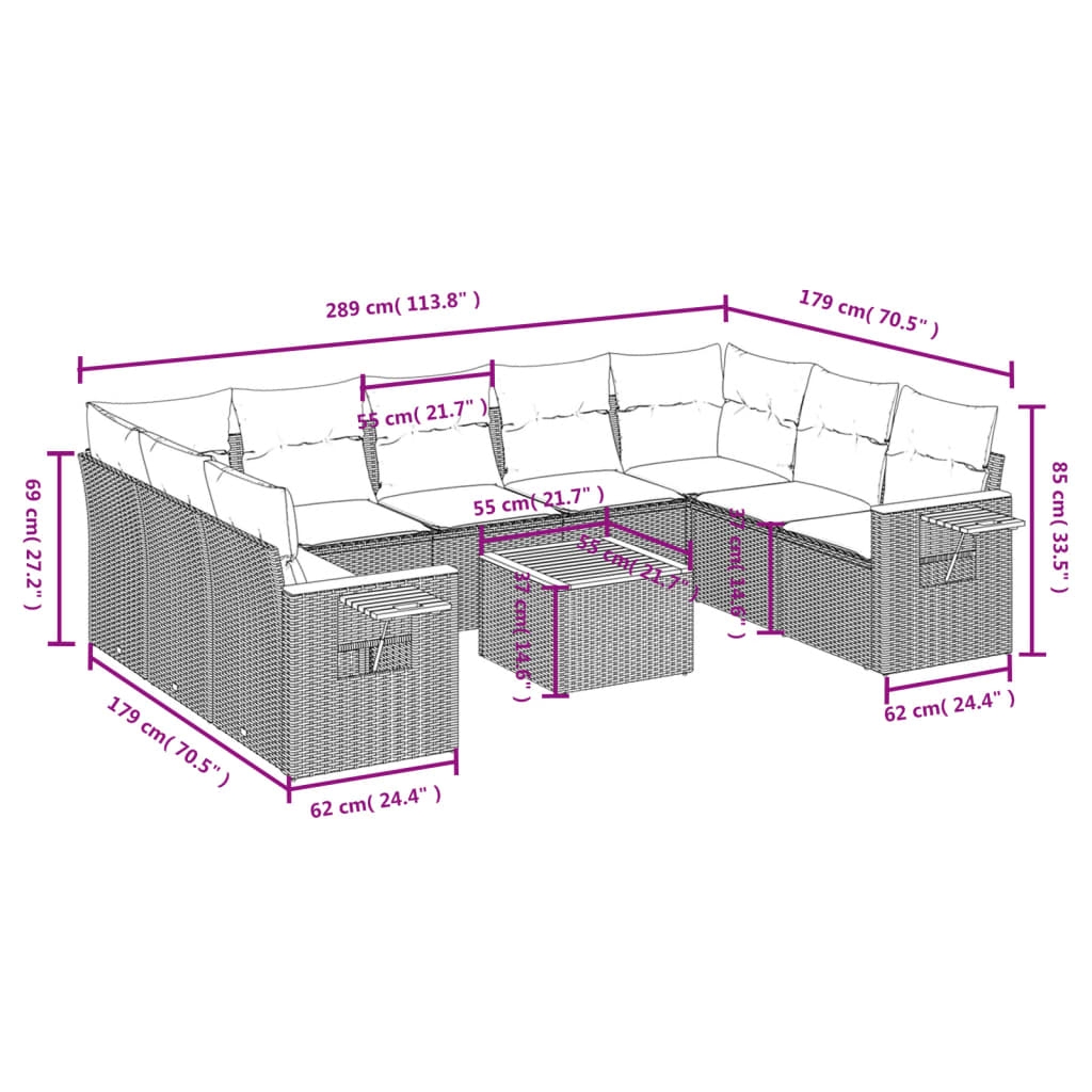 Diese Garten-Sofagarnitur ist die perfekte Ergänzung zu deinem Garten, deiner Terrasse oder deinem Innenhof. Sie bietet einen bequemen und einladenden Platz, um mit Familie und Freunden zu plaudern oder dich einfach nur zu entspannen und das Leben im Freien zu genießen. Langlebiges Material: PE-Rattan, auch als Poly Rattan bekannt, ist ein robustes, pflegeleichtes synthetisches Material, das die Optik von natürlichem Rattan aufweist. Es kennzeichnet sich durch ein geringes Eigengewicht und lässt sich einfach reinigen. Aufgrund seiner Haltbarkeit und Witterungsbeständigkeit wird es häufig bei der Herstellung von Gartenmöbeln verwendet.Stauraum mit wasserfestem Beutel: Das Gartensofa verfügen über ein Staufach unter der Sitzfläche, das mit einem wasserfesten Beutel zur Aufbewahrung von Kissen, Spielzeug und anderen Gegenständen versehen ist. Der Innenbeutel lässt sich mit Klettverschlüssen sicher und stabil an den Gartenmöbeln befestigen.Praktischer Beistelltisch: Dieses Gartensofa verfügt über klappbare Ablagen mit Gasfedern an den Armlehnen, auf denen du verschieden Sachen griffbereit aufbewahren kannst.Abnehmbarer und waschbarer Bezug: Diese Sitzkissen verfügen über abnehmbare Bezüge für einfaches Waschen und Pflegen.Modulares Design: Dank des modularen Designs lassen sich die Gartenmöbel völlig flexibel und einfach umstellen, um deinen Außenbereich ganz individuell zu gestalten. Gut zu wissen:Wir empfehlen dir, deine Gartenmöbel mit einer wasserdichten Hülle zu schützen, um lange Zeit eine ansprechende Optik aufzuweisen.