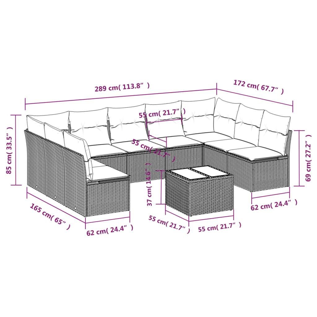- Gesamtabmessungen des Sofas: 289 x 172 x 69 cm (B x T x H)