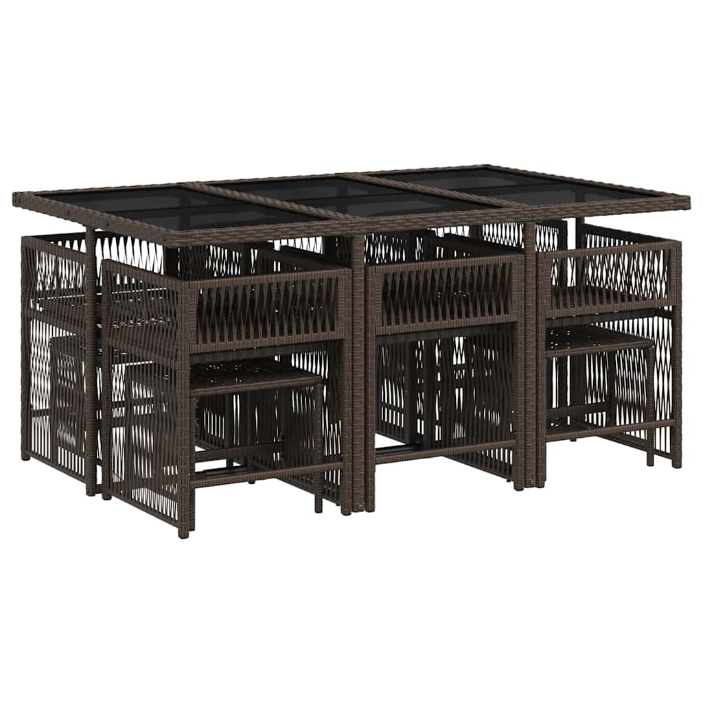 Diese Garten-Essgruppe ist eine ideale Wahl für Mahlzeiten im Freien oder einfach nur zum Entspannen im Garten, Hinterhof oder auf der Terrasse. Langlebiges Material: PE-Rattan, auch als Poly Rattan bekannt, ist ein robustes, pflegeleichtes synthetisches Material, das die Optik von natürlichem Rattan aufweist. Es kennzeichnet sich durch ein geringes Eigengewicht und lässt sich einfach reinigen. Aufgrund seiner Haltbarkeit und Witterungsbeständigkeit wird es häufig bei der Herstellung von Gartenmöbeln verwendet.Platzsparende Aufbewahrung: Dank der klappbaren Rückenlehnen lassen sich die Stühle unter dem Tisch verstauen, sodass die gesamte Essgruppe bei Nichtgebrauch eine platzsparende Würfelform bildet.Bequemes Sitzerlebnis: Dieser Gartensessel mit dick gepolsterten Kissen bietet ein angenehmes Sitzgefühl.Abnehmbarer und waschbarer Bezug: Die Sitzkissen verfügen über abnehmbare Bezüge, die sich ganz einfach waschen und reinigen lassen. Dank der Klappen an der Rückseite können die Kissen ganz einfach an den Rückenlehnen befestigt werden.Tischplatte aus Glas: Die Tischplatte des Gartentisches besteht aus starkem und langlebigem Hartglas, sodass sie leicht mit einem feuchten Tuch gereinigt werden kann und deinem Außenbereich einen Hauch von Eleganz verleiht. Gut zu wissen:Wir empfehlen dir, deine Gartenmöbel mit einer wasserdichten Hülle zu schützen, um lange Zeit eine ansprechende Optik aufzuweisen.