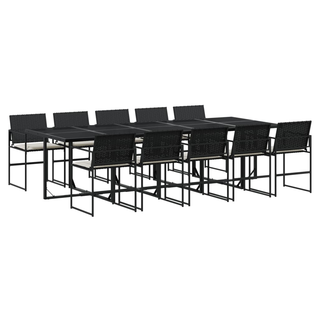 Diese Garten-Essgruppe ist eine ideale Wahl für Mahlzeiten im Freien oder einfach nur zum Entspannen im Garten, Hinterhof oder auf der Terrasse. Langlebiges Material: PE-Rattan, auch als Poly Rattan bekannt, ist ein robustes, pflegeleichtes synthetisches Material, das die Optik von natürlichem Rattan aufweist. Es kennzeichnet sich durch ein geringes Eigengewicht und lässt sich einfach reinigen. Aufgrund seiner Haltbarkeit und Witterungsbeständigkeit wird es häufig bei der Herstellung von Gartenmöbeln verwendet.Platzsparende Aufbewahrung: Dank der klappbaren Rückenlehnen lassen sich die Stühle unter dem Tisch verstauen, sodass die gesamte Essgruppe bei Nichtgebrauch eine platzsparende Würfelform bildet.Abnehmbarer und waschbarer Bezug: Diese Sitzkissen verfügen über abnehmbare Bezüge für einfaches Waschen und Pflegen.Tischplatte aus Glas: Die Tischplatte des Gartentisches besteht aus starkem und langlebigem Hartglas, sodass sie leicht mit einem feuchten Tuch gereinigt werden kann und deinem Außenbereich einen Hauch von Eleganz verleiht.Robuster und stabiler Rahmen: Dank des pulverbeschichteten Stahlrahmens ist das Möbelstück robust, stabil und für den täglichen Einsatz im Außenbereich geeignet.Gut zu wissen:Wir empfehlen dir, deine Gartenmöbel mit einer wasserdichten Hülle zu schützen, um lange Zeit eine ansprechende Optik aufzuweisen.