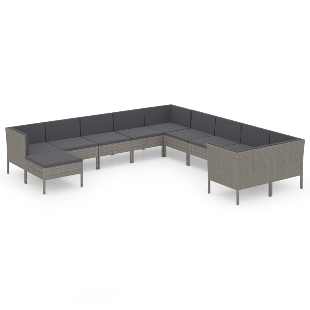 Schaffen Sie mit diesem Garten-Lounge-Set einen auffälligen und entspannenden Lounge-Bereich, von dem Sie schon immer geträumt haben. Auf diesem Gartenmöbel-Set können Sie mit Ihrer Familie und Ihren Freunden einen entspannten, sonnigen Nachmittag oder Sommerabend genießen! Dank des witterungsbeständigen PE-Rattans lässt sich dieses Garten-Lounge-Set leicht reinigen und pflegen. Das pulverbeschichtete Stahlgestell macht die Gartenmöbel stabil und robust. Mit dicken und weichen Auflagen versehen, bietet diese Garten-Sofagarnitur höchsten Sitzkomfort. Dabei können die pflegeleichten Polyesterbezüge abgenommen und gewaschen werden. Dank seines leichten und modularen Aufbaus lässt sich dieses Möbelset auch problemlos umstellen. Hinweis: Um die Lebensdauer Ihrer Gartenmöbel zu verlängern, empfehlen wir Ihnen, diese regelmäßig zu reinigen und im Freien vor Niederschlägen oder starken Sonnenstrahlen zu schützen.Reinigung: Verwenden Sie eine milde SeifenlösungLagerung: Wenn möglich, an einem kühlen, trockenen Ort im Innenbereich lagern. Wenn das Produkt im Freien gelagert wird, schützen Sie es mit einer wasserdichten Abdeckung. Wischen und trocknen Sie das überschüssige Wasser oder den Schnee nach Regen oder Schneefall von ebenen Flächen. Sorgen Sie für eine ausreichende Luftzirkulation, um feuchtigkeitsbedingte Schäden zu vermeiden.