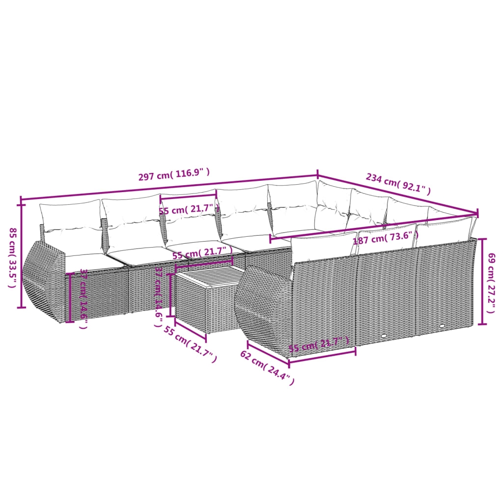 Diese Garten-Sofagarnitur ist die perfekte Ergänzung zu deinem Garten, deiner Terrasse oder deinem Innenhof. Sie bietet einen bequemen und einladenden Platz, um mit Familie und Freunden zu plaudern oder dich einfach nur zu entspannen und das Leben im Freien zu genießen. Langlebiges Material: PE-Rattan, auch als Poly Rattan bekannt, ist ein robustes, pflegeleichtes synthetisches Material, das die Optik von natürlichem Rattan aufweist. Es kennzeichnet sich durch ein geringes Eigengewicht und lässt sich einfach reinigen. Aufgrund seiner Haltbarkeit und Witterungsbeständigkeit wird es häufig bei der Herstellung von Gartenmöbeln verwendet.Stabile und pflegeleichte Tischplatte: Dieser Gartentisch besitzt eine Tischplatte aus Akazienholz, die robust und langlebig ist und sich leicht mit einem feuchten Tuch reinigen lässt. Bequemes Sitzerlebnis: Dieser Gartensessel mit dick gepolsterten Kissen bietet ein angenehmes Sitzgefühl.Abnehmbarer und waschbarer Bezug: Diese Sitzkissen verfügen über abnehmbare Bezüge für einfaches Waschen und Pflegen.Modulares Design: Dank des modularen Designs lassen sich die Gartenmöbel völlig flexibel und einfach umstellen, um deinen Außenbereich ganz individuell zu gestalten. Gut zu wissen:Wir empfehlen dir, deine Gartenmöbel mit einer wasserdichten Hülle zu schützen, um lange Zeit eine ansprechende Optik aufzuweisen.