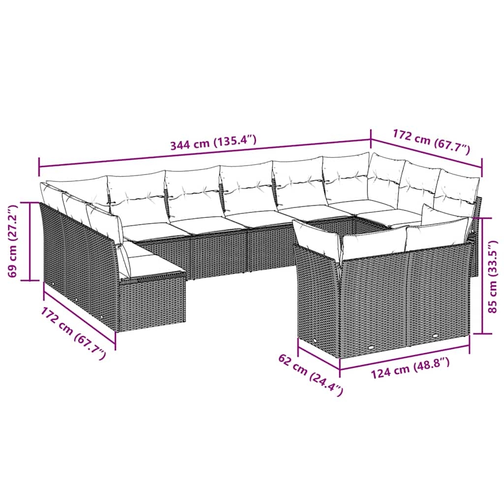 Diese Garten-Sofagarnitur ist die perfekte Ergänzung zu deinem Garten, deiner Terrasse oder deinem Innenhof. Sie bietet einen bequemen und einladenden Platz, um mit Familie und Freunden zu plaudern oder dich einfach nur zu entspannen und das Leben im Freien zu genießen. Langlebiges Material: PE-Rattan, auch als Poly Rattan bekannt, ist ein robustes, pflegeleichtes synthetisches Material, das die Optik von natürlichem Rattan aufweist. Es kennzeichnet sich durch ein geringes Eigengewicht und lässt sich einfach reinigen. Aufgrund seiner Haltbarkeit und Witterungsbeständigkeit wird es häufig bei der Herstellung von Gartenmöbeln verwendet.Stauraum mit wasserfestem Beutel: Jedes Gartensofa verfügt über ein Staufach unter der Sitzfläche, das mit einem wasserfesten Beutel zur Aufbewahrung von Kissen, Spielzeug und anderen Gegenständen versehen ist. Die Kissen sind mit Bezügen versehen und lassen sich mit Klettverschlüssen fest und sicher an den Sofas befestigen.Abnehmbarer und waschbarer Bezug: Diese Sitzkissen verfügen über abnehmbare Bezüge für einfaches Waschen und Pflegen.Modulares Design: Dank des modularen Designs lassen sich die Gartenmöbel völlig flexibel und einfach umstellen, um deinen Außenbereich ganz individuell zu gestalten. Gut zu wissen:Wir empfehlen dir, deine Gartenmöbel mit einer wasserdichten Hülle zu schützen, um lange Zeit eine ansprechende Optik aufzuweisen.