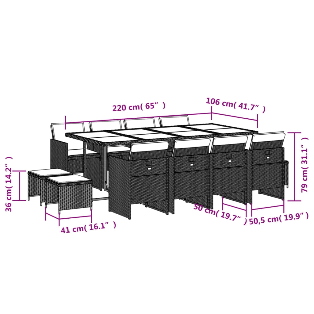 Diese Garten-Essgruppe ist eine ideale Wahl für Mahlzeiten im Freien oder einfach nur zum Entspannen im Garten, Hinterhof oder auf der Terrasse. Langlebiges Material: PE-Rattan, auch als Poly Rattan bekannt, ist ein robustes, pflegeleichtes synthetisches Material, das die Optik von natürlichem Rattan aufweist. Es kennzeichnet sich durch ein geringes Eigengewicht und lässt sich einfach reinigen. Aufgrund seiner Haltbarkeit und Witterungsbeständigkeit wird es häufig bei der Herstellung von Gartenmöbeln verwendet.Platzsparende Aufbewahrung: Dank der klappbaren Rückenlehne lassen sich die Stühle unter dem Tisch verstauen. Zudem finden auch die Hocker Platz unter den Stühlen, sodass die gesamte Essgruppe bei Nichtgebrauch eine platzsparende Würfelform bildet, um deinen verfügbaren Platz optimal auszunutzen. Bequemes Sitzerlebnis: Dieser Gartensessel mit dick gepolsterten Kissen bietet ein angenehmes Sitzgefühl.Abnehmbarer und waschbarer Bezug: Diese Sitzkissen verfügen über abnehmbare Bezüge für einfaches Waschen und Pflegen.Tischplatte aus Glas: Die Tischplatte des Gartentisches besteht aus starkem und langlebigem Hartglas, sodass sie leicht mit einem feuchten Tuch gereinigt werden kann und deinem Außenbereich einen Hauch von Eleganz verleiht. Gut zu wissen: Wir empfehlen dir, deine Gartenmöbel mit einer wasserdichten Hülle zu schützen, um lange Zeit eine ansprechende Optik aufzuweisen.