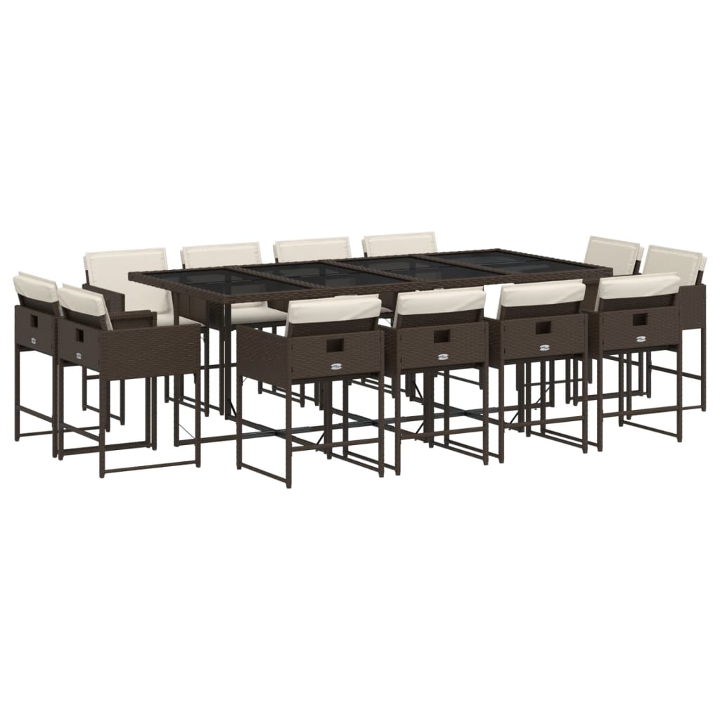 Diese Garten-Essgruppe ist eine ideale Wahl für Mahlzeiten im Freien oder einfach nur zum Entspannen im Garten, Hinterhof oder auf der Terrasse. Langlebiges Material: PE-Rattan, auch als Poly Rattan bekannt, ist ein robustes, pflegeleichtes synthetisches Material, das die Optik von natürlichem Rattan aufweist. Es kennzeichnet sich durch ein geringes Eigengewicht und lässt sich einfach reinigen. Aufgrund seiner Haltbarkeit und Witterungsbeständigkeit wird es häufig bei der Herstellung von Gartenmöbeln verwendet.Platzsparende Aufbewahrung: Dank der klappbaren Rückenlehnen lassen sich die Stühle unter dem Tisch verstauen, sodass die gesamte Essgruppe bei Nichtgebrauch eine platzsparende Würfelform bildet.Bequemes Sitzerlebnis: Dieser Gartensessel mit dick gepolsterten Kissen bietet ein angenehmes Sitzgefühl.Abnehmbarer und waschbarer Bezug: Die Sitzkissen verfügen über abnehmbare Bezüge, die sich ganz einfach waschen und reinigen lassen. Dank der Klappen an der Rückseite können die Sitzkissen ganz einfach an den Stühlen befestigt werden.Tischplatte aus Glas: Die Tischplatte des Gartentisches besteht aus starkem und langlebigem Hartglas, sodass sie sich leicht mit einem feuchten Tuch reinigen lässt und deinem Außenbereich einen Hauch von Eleganz verleiht. Gut zu wissen:Wir empfehlen dir, deine Gartenmöbel mit einer wasserdichten Hülle zu schützen, um lange Zeit eine ansprechende Optik aufzuweisen.