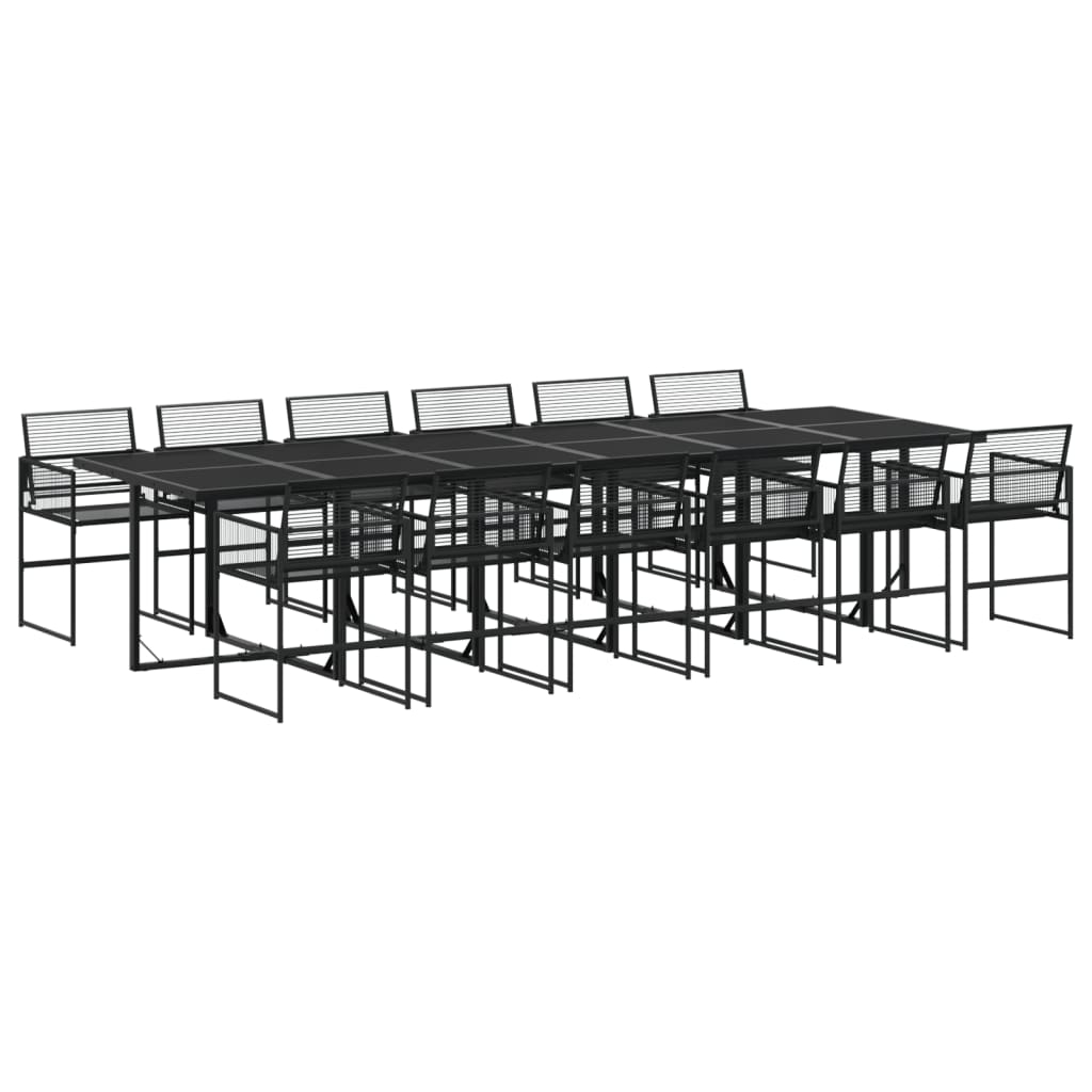 Diese Garten-Essgruppe ist eine ideale Wahl für Mahlzeiten im Freien oder einfach nur zum Entspannen im Garten, Hinterhof oder auf der Terrasse. Langlebiges Material: PE-Rattan, auch als Poly Rattan bekannt, ist ein robustes, pflegeleichtes synthetisches Material, das die Optik von natürlichem Rattan aufweist. Es kennzeichnet sich durch ein geringes Eigengewicht und lässt sich einfach reinigen. Aufgrund seiner Haltbarkeit und Witterungsbeständigkeit wird es häufig bei der Herstellung von Gartenmöbeln verwendet.Kompakte Aufbewahrung: Die Gartenstühle können platzsparend unter dem Tisch verstaut werden.Tischplatte aus Glas: Die Tischplatte des Gartentisches besteht aus starkem und langlebigem Hartglas, sodass sie leicht mit einem feuchten Tuch gereinigt werden kann und deinem Außenbereich einen Hauch von Eleganz verleiht.Robuster und stabiler Rahmen: Dank des pulverbeschichteten Stahlrahmens ist das Möbelstück robust, stabil und für den täglichen Einsatz im Außenbereich geeignet.Gut zu wissen:Wir empfehlen dir, deine Gartenmöbel mit einer wasserdichten Hülle zu schützen, um lange Zeit eine ansprechende Optik aufzuweisen.