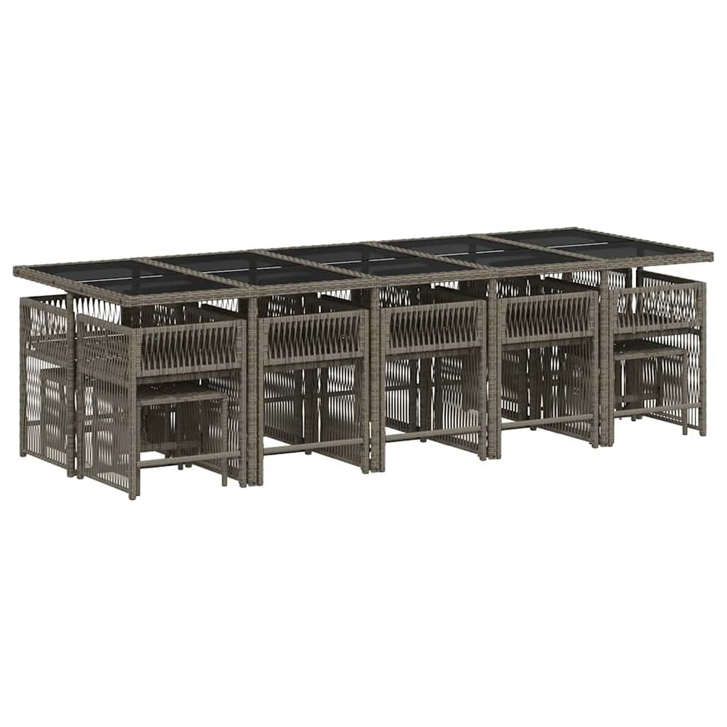 Diese Garten-Essgruppe ist eine ideale Wahl für Mahlzeiten im Freien oder einfach nur zum Entspannen im Garten, Hinterhof oder auf der Terrasse. Langlebiges Material: PE-Rattan, auch als Poly Rattan bekannt, ist ein robustes, pflegeleichtes synthetisches Material, das die Optik von natürlichem Rattan aufweist. Es kennzeichnet sich durch ein geringes Eigengewicht und lässt sich einfach reinigen. Aufgrund seiner Haltbarkeit und Witterungsbeständigkeit wird es häufig bei der Herstellung von Gartenmöbeln verwendet.Platzsparende Aufbewahrung: Dank der klappbaren Rückenlehnen lassen sich die Stühle unter dem Tisch verstauen, sodass die gesamte Essgruppe bei Nichtgebrauch eine platzsparende Würfelform bildet.Bequemes Sitzerlebnis: Dieser Gartensessel mit dick gepolsterten Kissen bietet ein angenehmes Sitzgefühl.Abnehmbarer und waschbarer Bezug: Die Sitzkissen verfügen über abnehmbare Bezüge, die sich ganz einfach waschen und reinigen lassen. Dank der Klappen an der Rückseite können die Kissen ganz einfach an den Rückenlehnen befestigt werden.Tischplatte aus Glas: Die Tischplatte des Gartentisches besteht aus starkem und langlebigem Hartglas, sodass sie leicht mit einem feuchten Tuch gereinigt werden kann und deinem Außenbereich einen Hauch von Eleganz verleiht. Gut zu wissen:Wir empfehlen dir, deine Gartenmöbel mit einer wasserdichten Hülle zu schützen, um lange Zeit eine ansprechende Optik aufzuweisen.