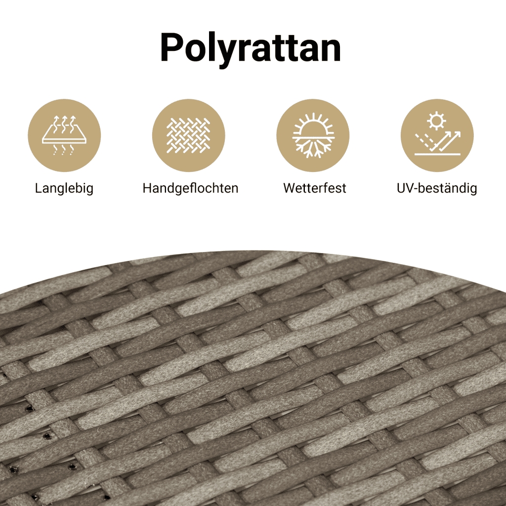 - Material: PE-Rattan, pulverbeschichteter Stahl