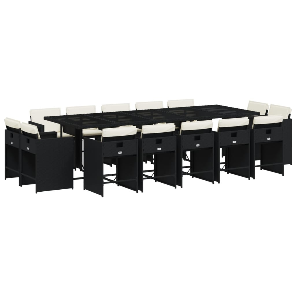 Diese Garten-Essgruppe ist eine ideale Wahl für Mahlzeiten im Freien oder einfach nur zum Entspannen im Garten, Hinterhof oder auf der Terrasse. Langlebiges Material: PE-Rattan, auch als Poly Rattan bekannt, ist ein robustes, pflegeleichtes synthetisches Material, das die Optik von natürlichem Rattan aufweist. Es kennzeichnet sich durch ein geringes Eigengewicht und lässt sich einfach reinigen. Aufgrund seiner Haltbarkeit und Witterungsbeständigkeit wird es häufig bei der Herstellung von Gartenmöbeln verwendet.Platzsparende Aufbewahrung: Dank der klappbaren Rückenlehnen lassen sich die Stühle unter dem Tisch verstauen, sodass die gesamte Essgruppe bei Nichtgebrauch eine platzsparende Würfelform bildet.Bequemes Sitzerlebnis: Dieser Gartensessel mit dick gepolsterten Kissen bietet ein angenehmes Sitzgefühl.Abnehmbarer und waschbarer Bezug: Die Sitzkissen verfügen über abnehmbare Bezüge, die sich ganz einfach waschen und reinigen lassen. Dank der Klappen an der Rückseite können die Sitzkissen ganz einfach an den Stühlen befestigt werden.Stabile und pflegeleichte Tischplatte: Dieser Gartentisch besitzt eine Tischplatte aus Hartglas, die robust und langlebig ist und sich leicht mit einem feuchten Tuch reinigen lässt. Gut zu wissen: Wir empfehlen dir, deine Gartenmöbel mit einer wasserdichten Hülle zu schützen, um lange Zeit eine ansprechende Optik aufzuweisen.