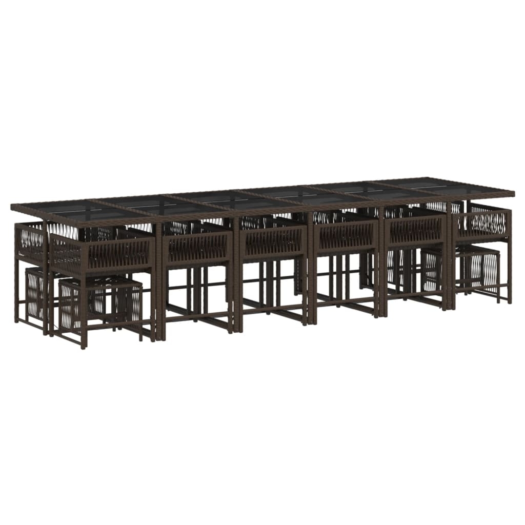 Diese Garten-Essgruppe ist eine ideale Wahl für Mahlzeiten im Freien oder einfach nur zum Entspannen im Garten, Hinterhof oder auf der Terrasse. Langlebiges Material: PE-Rattan, auch als Poly Rattan bekannt, ist ein robustes, pflegeleichtes synthetisches Material, das die Optik von natürlichem Rattan aufweist. Es kennzeichnet sich durch ein geringes Eigengewicht und lässt sich einfach reinigen. Aufgrund seiner Haltbarkeit und Witterungsbeständigkeit wird es häufig bei der Herstellung von Gartenmöbeln verwendet.Platzsparende Aufbewahrung: Dank der klappbaren Rückenlehne lassen sich die Stühle unter dem Tisch verstauen. Zudem finden auch die Hocker Platz unter den Stühlen, sodass die gesamte Essgruppe bei Nichtgebrauch eine platzsparende Würfelform bildet, um deinen verfügbaren Platz optimal auszunutzen.Bequemes Sitzerlebnis: Dieser Gartensessel mit dick gepolsterten Kissen bietet ein angenehmes Sitzgefühl.Abnehmbarer und waschbarer Bezug: Die Sitzkissen verfügen über abnehmbare Bezüge, die sich ganz einfach waschen und reinigen lassen. Dank der Klappen an der Rückseite können die Kissen ganz einfach an den Rückenlehnen befestigt werden.Tischplatte aus Glas: Die Tischplatte des Gartentisches besteht aus starkem und langlebigem Hartglas, sodass sie leicht mit einem feuchten Tuch gereinigt werden kann und deinem Außenbereich einen Hauch von Eleganz verleiht. Gut zu wissen:Wir empfehlen dir, deine Gartenmöbel mit einer wasserdichten Hülle zu schützen, um lange Zeit eine ansprechende Optik aufzuweisen.