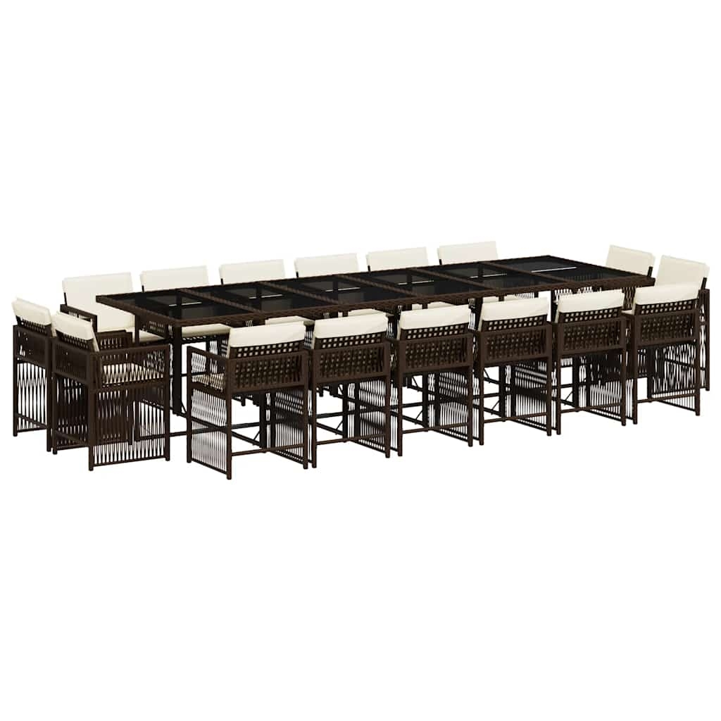 Diese Garten-Essgruppe ist eine ideale Wahl für Mahlzeiten im Freien oder einfach nur zum Entspannen im Garten, Hinterhof oder auf der Terrasse. Langlebiges Material: PE-Rattan, auch als Poly Rattan bekannt, ist ein robustes, pflegeleichtes synthetisches Material, das die Optik von natürlichem Rattan aufweist. Es kennzeichnet sich durch ein geringes Eigengewicht und lässt sich einfach reinigen. Aufgrund seiner Haltbarkeit und Witterungsbeständigkeit wird es häufig bei der Herstellung von Gartenmöbeln verwendet.Platzsparende Aufbewahrung: Dank der klappbaren Rückenlehnen lassen sich die Stühle unter dem Tisch verstauen, sodass die gesamte Essgruppe bei Nichtgebrauch eine platzsparende Würfelform bildet.Bequemes Sitzerlebnis: Dieser Gartensessel mit dick gepolsterten Kissen bietet ein angenehmes Sitzgefühl.Abnehmbarer und waschbarer Bezug: Die Sitzkissen verfügen über abnehmbare Bezüge, die sich ganz einfach waschen und reinigen lassen. Dank der Klappen an der Rückseite können die Kissen ganz einfach an den Rückenlehnen befestigt werden.Tischplatte aus Glas: Die Tischplatte des Gartentisches besteht aus starkem und langlebigem Hartglas, sodass sie leicht mit einem feuchten Tuch gereinigt werden kann und deinem Außenbereich einen Hauch von Eleganz verleiht. Gut zu wissen:Wir empfehlen dir, deine Gartenmöbel mit einer wasserdichten Hülle zu schützen, um lange Zeit eine ansprechende Optik aufzuweisen.