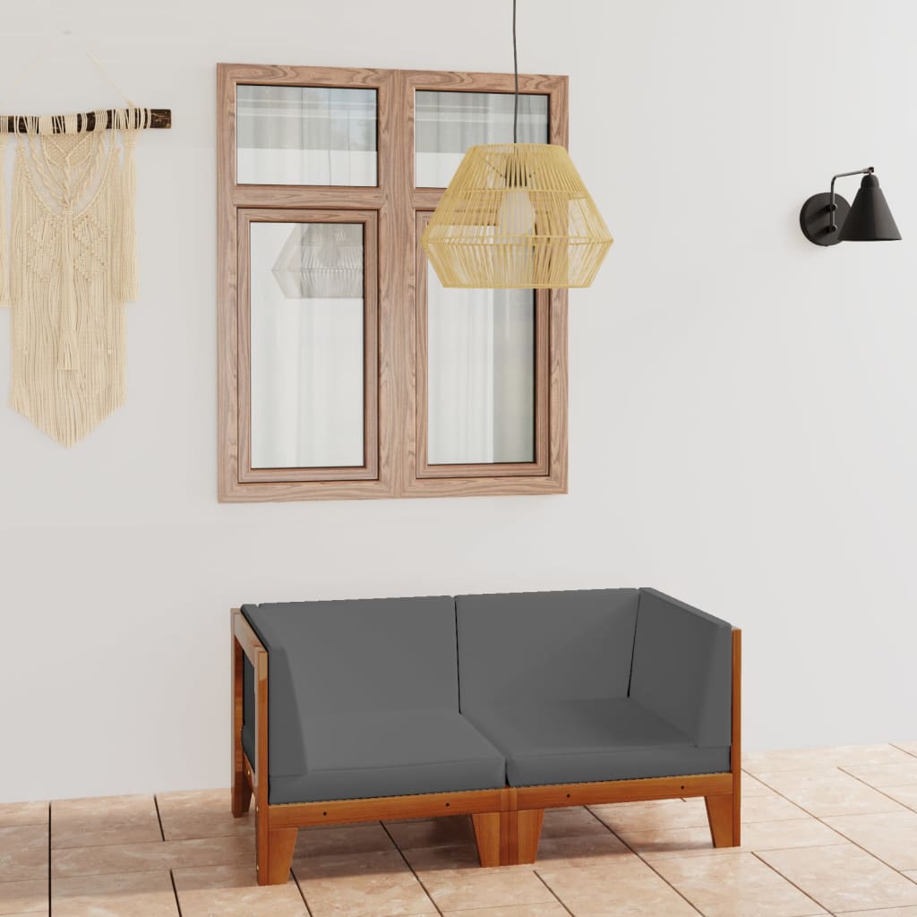 Dieses 2-Sitzer-Sofa aus Holz ist die ideale Wahl, um sich zu entspannen und das Wetter zu genießen, ein Nickerchen zu machen oder mit Ihrer Familie oder Freunden zu plaudern. Mit seinem zeitlosen Design verleiht dieses Sofa Ihrem Wohnraum einen Hauch von rustikalem Charme. Die 2 Sofa-Eckelemente bestehen aus massivem Akazienholz, einem tropischen Hartholz, das witterungsbeständig und sehr langlebig ist. Das Modulsofa hat eine solide Konstruktion und benötigt wenig Wartung. In Kombination mit dick gepolsterten Kissen bietet dieses Sofa höchsten Komfort. Dieses Möbel-Set ist außerdem leicht und modular, wodurch es vollständig flexibel und leicht an jede Umgebung angepasst werden kann. Sie können es mit anderen modularen Elementen wie Couchtisch, Fußstütze und Mittelsofa kombinieren, um Ihre persönlichen Garten-Lounge-Set-Konfigurationen zu erstellen! Hinweis: Um die Lebensdauer Ihrer Gartenmöbel zu verlängern, empfehlen wir Ihnen, diese regelmäßig zu reinigen und im Freien vor Niederschlägen oder starken Sonnenstrahlen zu schützen.Reinigung: Verwenden Sie eine milde Seifenlösung.Lagerung: Wenn möglich, an einem kühlen, trockenen Ort im Innenbereich lagern. Wenn das Produkt im Freien gelagert wird, schützen Sie es mit einer wasserdichten Abdeckung. Wischen und trocknen Sie das überschüssige Wasser oder den Schnee nach Regen oder Schneefall von ebenen Flächen. Sorgen Sie für eine ausreichende Luftzirkulation, um feuchtigkeitsbedingte Schäden zu vermeiden.