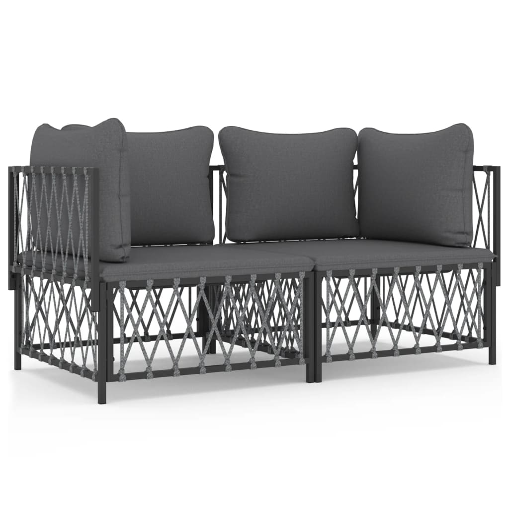 Genieße eine Tasse Kaffee oder Tee in deinem Außenbereich mit diesem bequemen Garten-Lounge-Set! Langlebiges Material: Gewebe ist ein Textilmaterial, das durch Weben hergestellt wird. Es ist ein äußerst praktischer Stoff, den wir aufgrund seiner Langlebigkeit und Vielseitigkeit in unserem Alltag häufig verwenden.Stabiler Rahmen: Dank des pulverbeschichtete Stahlrahmens ist das Lounge-Set robust, stabil und für den täglichen Einsatz im Freien geeignet.Bequemes Sitzgefühl: Die Rückenlehne sorgt für zusätzlichen Sitzkomfort. Zum hohen Sitzkomfort tragen auch die dick gepolsterten Kissen bei.Modulares Design: Die Sofagarnitur lässt sich flexibel und leicht umstellen und mit anderen modularen Elementen aus unserem Webshop frei kombinieren, um dein ganz persönliches Garten-Lounge-Set zusammenzustellen! Hinweis:Damit deine Gartenmöbel lange schön bleiben, empfehlen wir dir, sie mit einer wasserdichten Hülle zu schützen.