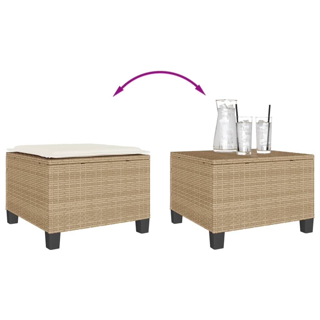 Genieße eine Tasse Kaffee oder unterhalte dich mit deiner Familie und deinen Freunden im Garten, Hinterhof oder auf dem Balkon mit diesem bequemen Bistro-Set! Langlebiges Material: PE-Rattan, auch als Poly Rattan bekannt, ist ein robustes, pflegeleichtes synthetisches Material, das die Optik von natürlichem Rattan aufweist. Es kennzeichnet sich durch ein geringes Eigengewicht und lässt sich einfach reinigen. Aufgrund seiner Haltbarkeit und Witterungsbeständigkeit wird es häufig bei der Herstellung von Gartenmöbeln verwendet.Bequemes Sitzerlebnis: Dieser Gartensessel mit dick gepolsterten Kissen bietet ein angenehmes Sitzgefühl.Abnehmbarer und waschbarer Bezug: Diese Sitzkissen verfügen über abnehmbare Bezüge für einfaches Waschen und Pflegen.Vielseitiger Fußhocker: Der Hocker ist vielseitig einsetzbar und dient als bequeme Fußstütze beim Entspannen auf dem Sofa oder als zusätzlicher Sitzplatz in deinem Garten.Robuster und stabiler Rahmen: Dank des pulverbeschichteten Stahlrahmens ist das Möbelstück robust, stabil und für den täglichen Einsatz im Außenbereich geeignet. Gut zu wissen:Wir empfehlen dir, deine Gartenmöbel mit einer wasserdichten Hülle zu schützen, um lange Zeit eine ansprechende Optik aufzuweisen.