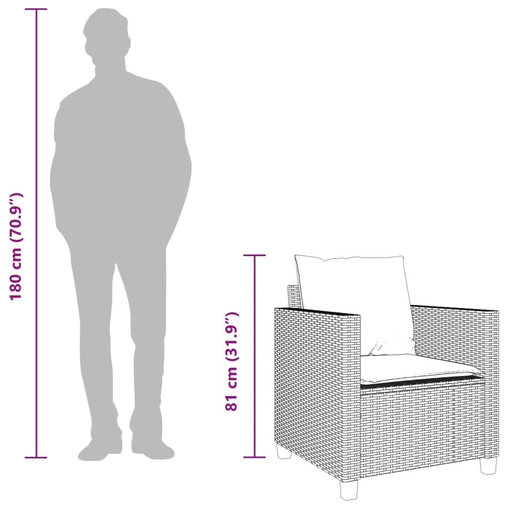 Genieße eine Tasse Kaffee oder unterhalte dich mit deiner Familie und deinen Freunden im Garten, Hinterhof oder auf dem Balkon mit diesem bequemen Bistro-Set! Langlebiges Material: PE-Rattan, auch als Poly Rattan bekannt, ist ein robustes, pflegeleichtes synthetisches Material, das die Optik von natürlichem Rattan aufweist. Es kennzeichnet sich durch ein geringes Eigengewicht und lässt sich einfach reinigen. Aufgrund seiner Haltbarkeit und Witterungsbeständigkeit wird es häufig bei der Herstellung von Gartenmöbeln verwendet.Bequemes Sitzerlebnis: Dieser Gartensessel mit dick gepolsterten Kissen bietet ein angenehmes Sitzgefühl.Abnehmbarer und waschbarer Bezug: Diese Sitzkissen verfügen über abnehmbare Bezüge für einfaches Waschen und Pflegen.Vielseitiger Fußhocker: Der Hocker ist vielseitig einsetzbar und dient als bequeme Fußstütze beim Entspannen auf dem Sofa oder als zusätzlicher Sitzplatz in deinem Garten.Robuster und stabiler Rahmen: Dank des pulverbeschichteten Stahlrahmens ist das Möbelstück robust, stabil und für den täglichen Einsatz im Außenbereich geeignet. Gut zu wissen:Wir empfehlen dir, deine Gartenmöbel mit einer wasserdichten Hülle zu schützen, um lange Zeit eine ansprechende Optik aufzuweisen.