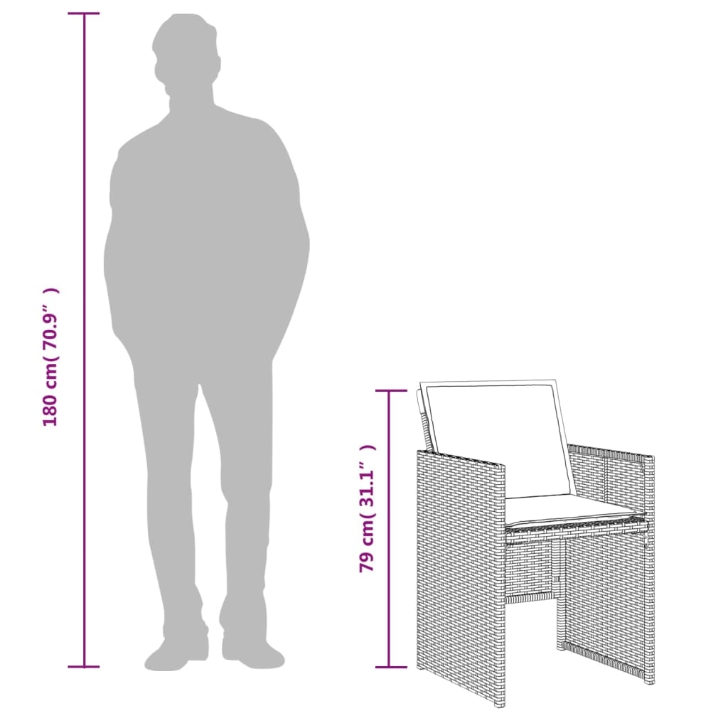 Genieße eine Tasse Kaffee oder unterhalte dich mit deiner Familie und deinen Freunden im Garten, Hinterhof oder auf dem Balkon mit diesem bequemen Bistro-Set! Langlebiges Material: PE-Rattan, auch als Poly Rattan bekannt, ist ein robustes, pflegeleichtes synthetisches Material, das die Optik von natürlichem Rattan aufweist. Es kennzeichnet sich durch ein geringes Eigengewicht und lässt sich einfach reinigen. Aufgrund seiner Haltbarkeit und Witterungsbeständigkeit wird es häufig bei der Herstellung von Gartenmöbeln verwendet.Platzsparende Aufbewahrung: Dank der klappbaren Rückenlehnen lassen sich diese Stühle platzsparend aufbewahren.Bequemes Sitzerlebnis: Dieser Gartensessel mit dick gepolsterten Kissen bietet ein angenehmes Sitzgefühl.Abnehmbarer und waschbarer Bezug: Die Sitzkissen verfügen über abnehmbare Bezüge, die sich ganz einfach waschen und reinigen lassen. Dank der Klappen an der Rückseite können die Sitzkissen ganz einfach an den Stühlen befestigt werden.Stabile und pflegeleichte Tischplatte: Dieser Gartentisch besitzt eine Tischplatte aus Akazienholz, die robust und langlebig ist und sich leicht mit einem feuchten Tuch reinigen lässt. Gut zu wissen:Wir empfehlen dir, deine Gartenmöbel mit einer wasserdichten Hülle zu schützen, um lange Zeit eine ansprechende Optik aufzuweisen.