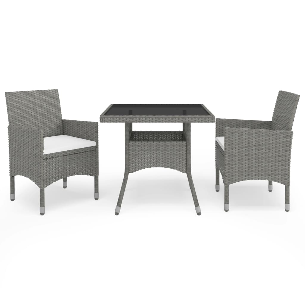 Genießen Sie unterhaltsame Gespräche und köstliche Getränke mit dieser dreiteiligen Sitzgruppe! Mit diesem Ess-Set können Sie mühelos alle Ansprüchen Ihrer Gäste erfüllen und gleichzeitig eine perfekte Umgebung für Mahlzeiten im Freien schaffen! Diese Essgruppe aus UV-beständigem PE-Rattan und starkem, pulverbeschichtetem Stahlrahmen ist wetterbeständig und robust. Die Hartglas-Tischplatte schafft eine glatte und leicht zu reinigende Oberfläche. Jede Sitzfläche ist mit einem abnehmbaren, dick gepolsterten Kissen versehen, das Ihnen zusätzlichen Komfort beim Sitzen bietet. Alle Kissenbezüge sind mit Reißverschluss versehen und daher einfach abnehmbar. Zusätzlich macht die leichte Konstruktion jedes Teil einfach zu umstellen und zu transportieren. Hinweis: Wir empfehlen, das Set bei Regen, Schnee und Frost abzudecken.