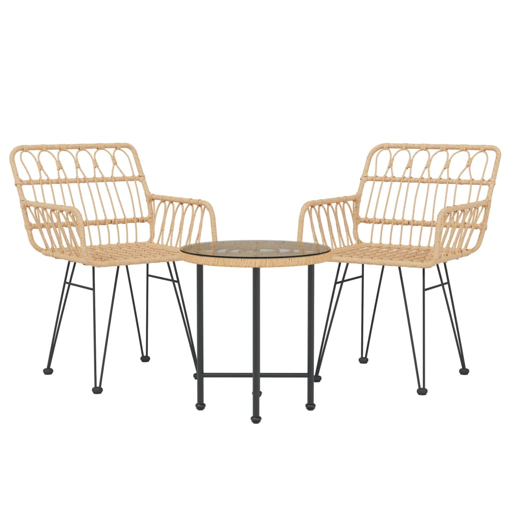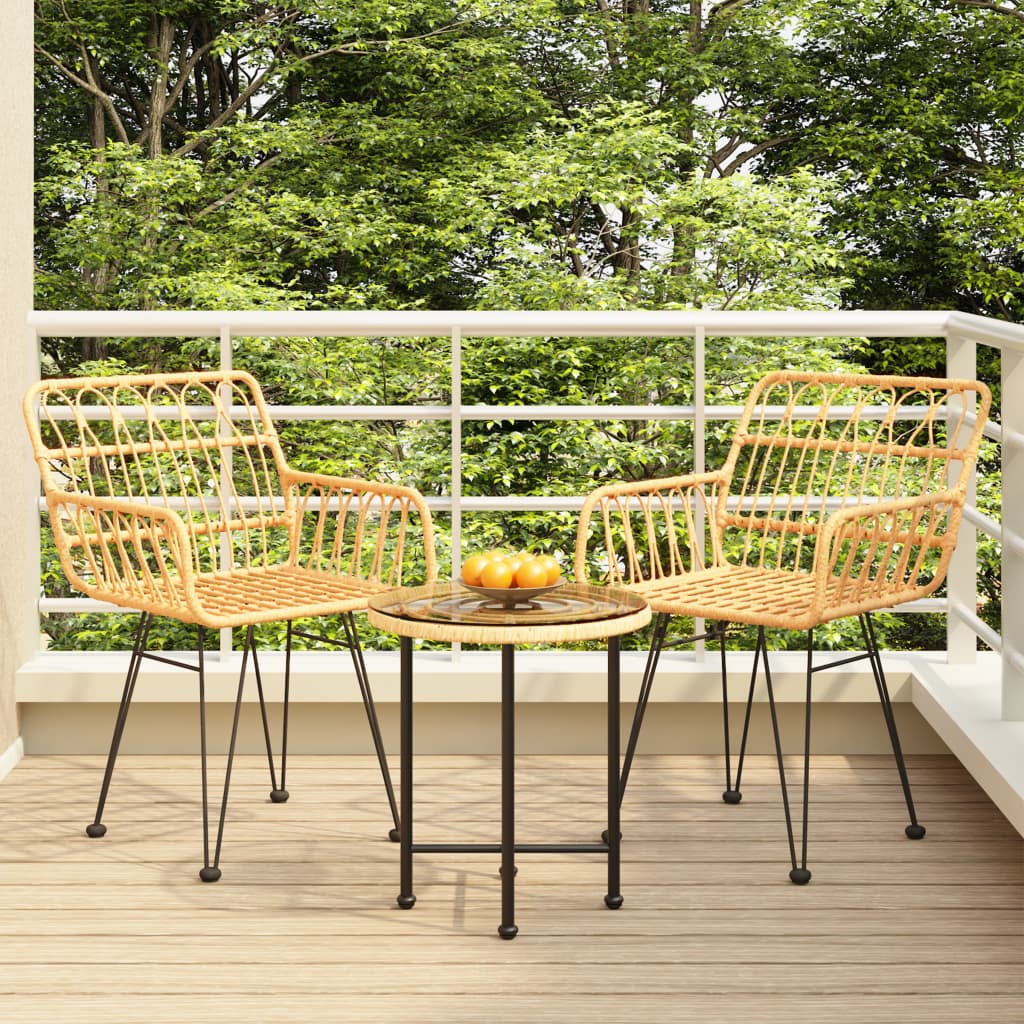 Schaffen Sie mit dieser Garten-Essgruppe eine überzeugende und zusammenhängende Ästhetik in Ihrem Außenbereich! Langlebiges Material: PE-Rattan, auch als Poly Rattan bekannt, ist witterungsbeständig und pflegeleicht. Seine Oberfläche weist lange Zeit eine ansprechende Optik auf. Es bietet hohe Qualität, Komfort und einen ästhetisches Look.Robuster und stabiler Rahmen: Dank des Stahlrahmens ist die Essgruppe robust, stabil und für den täglichen Einsatz im Freien geeignet.Praktische Tischplatte: Die glatte Tischplatte des Esstisches besteht aus Hartglas, das sich leicht mit einem feuchten Tuch reinigen lässt. Zudem bietet die robuste Tischplatte den perfekten Platz für Speisen, Getränke und einige Dekoartikel.Komfortable Sitzgelegenheit: Der Essstuhl ist mit einer Rückenlehne und Armlehnen ausgestattet, um höchsten Sitzkomfort zu bieten.Praktische Fußkappen: Das Bistro-Set ist mit Fußkappen ausgestattet, die für einen sicheren Stand auf dem Boden sorgen. Hinweis:Um die Lebensdauer deiner Gartenmöbel zu verlängern, empfehlen wir dir, sie mit einer wasserdichten Hülle zu schützen.Jedes Produkt wird mit einer Montageanleitung in der Verpackung für einen einfachen Zusammenbau geliefert.