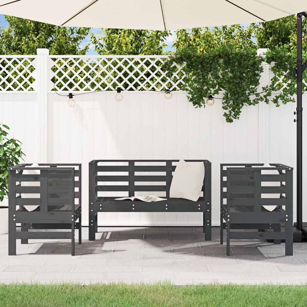 Dieses Garten-Lounge-Set aus Holz weist ein elegantes Design auf und ist eine ausgezeichnete Wahl zum Entspannen im Garten oder auf der Terrasse. Massives Kiefernholz: Das Outdoor-Lounge-Set ist aus massivem Kiefernholz gefertigt, das für Robustheit und Stabilität sorgt. Massives Kiefernholz ist ein wunderschönes Naturmaterial. Kiefernholz weist eine gerade Maserung auf und die Aststellen verleihen dem Material seine charakteristische, rustikale Optik.Bequemes Sitzerlebnis: Mit Armlehnen und Rückenlehnen versehen, bietet das Garten-Lounge-Set höchsten Komfort.Latten-Design: Das Latten-Design verhindert die Ansammlung von Wasser auf dem Lounge-Set, hält die Sitzfläche trocken und verhindert Verrottung.Breite Anwendungen: Die Gartengarnitur findet den perfekten Platz auf jeder Veranda, Terrasse, in jedem Hinterhof, Garten usw. Gut zu wissen:Wir empfehlen dir, deine Gartenmöbel mit einer wasserdichten Hülle zu schützen, um lange Zeit eine ansprechende Optik aufzuweisen.