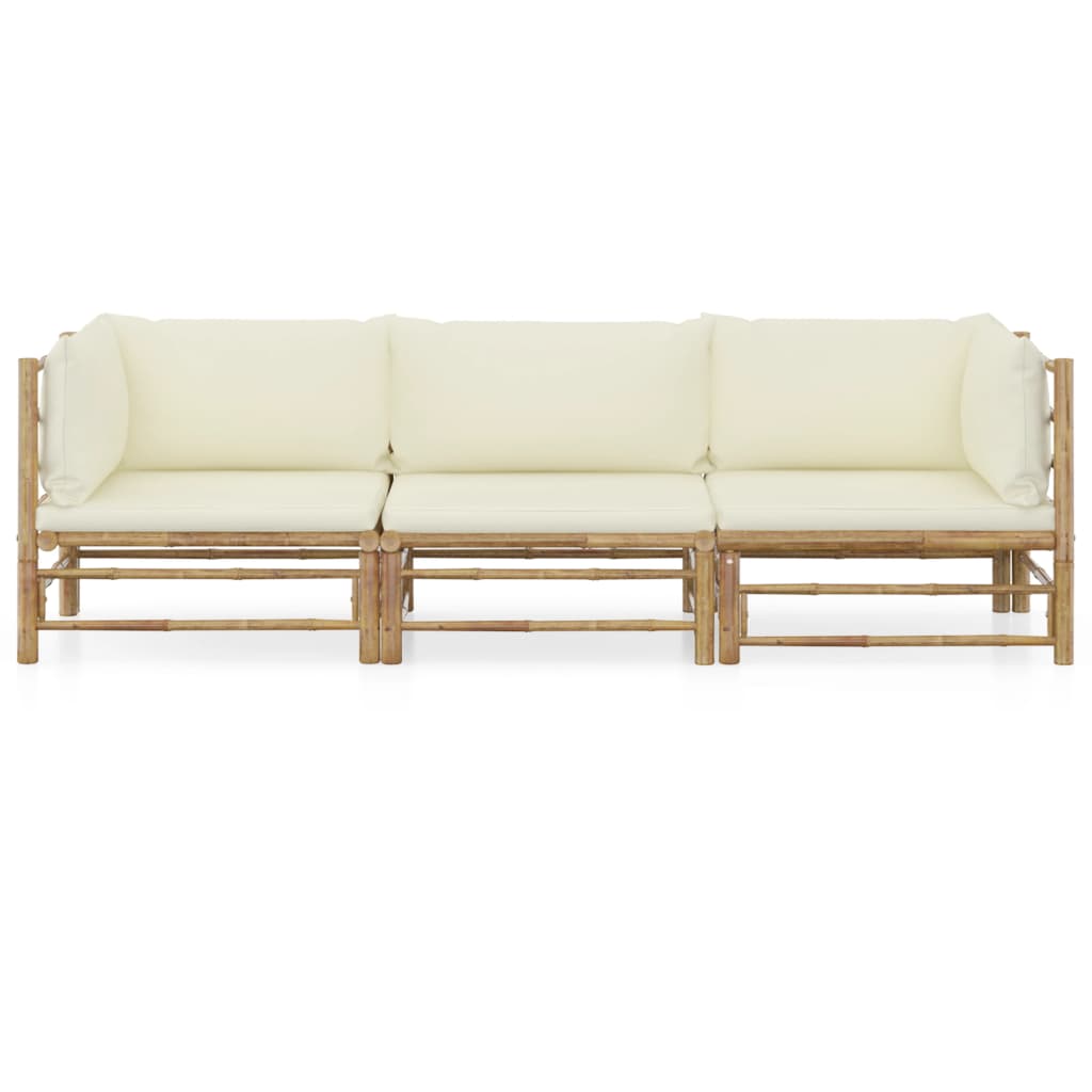 Schaffen Sie einen entspannenden Loungebereich mit diesem trendigen Garten-Lounge-Set aus Bambus. Dieses Garten-Lounge-Set besteht aus Bambus und ist daher robust, stabil und leicht zu reinigen. Die dick gepolsterten Kissen sorgen für zusätzlichen Komfort. Die Kissenbezüge sind abnehmbar und somit waschbar da sie mit Reißverschlüssen versehen sind. Dank seiner Leichtbauweise ist dieses Outdoor-Lounge-Set leicht zu umstellen. Dank des modularen Aufbaus können Sie das Möbel-Set nach Belieben in beliebiger Konfiguration aufstellen. Hinweis: Um die Lebensdauer Ihrer Gartenmöbel zu verlängern, empfehlen wir Ihnen, diese regelmäßig zu reinigen und im Freien vor Niederschlägen oder starken Sonnenstrahlen zu schützen.Reinigung: Verwenden Sie eine milde SeifenlösungLagerung: Wenn möglich, an einem kühlen, trockenen Ort im Innenbereich lagern. Wenn das Produkt im Freien gelagert wird, schützen Sie es mit einer wasserdichten Abdeckung. Wischen und trocknen Sie das überschüssige Wasser oder den Schnee nach Regen oder Schneefall von ebenen Flächen. Sorgen Sie für eine ausreichende Luftzirkulation, um feuchtigkeitsbedingte Schäden zu vermeiden.