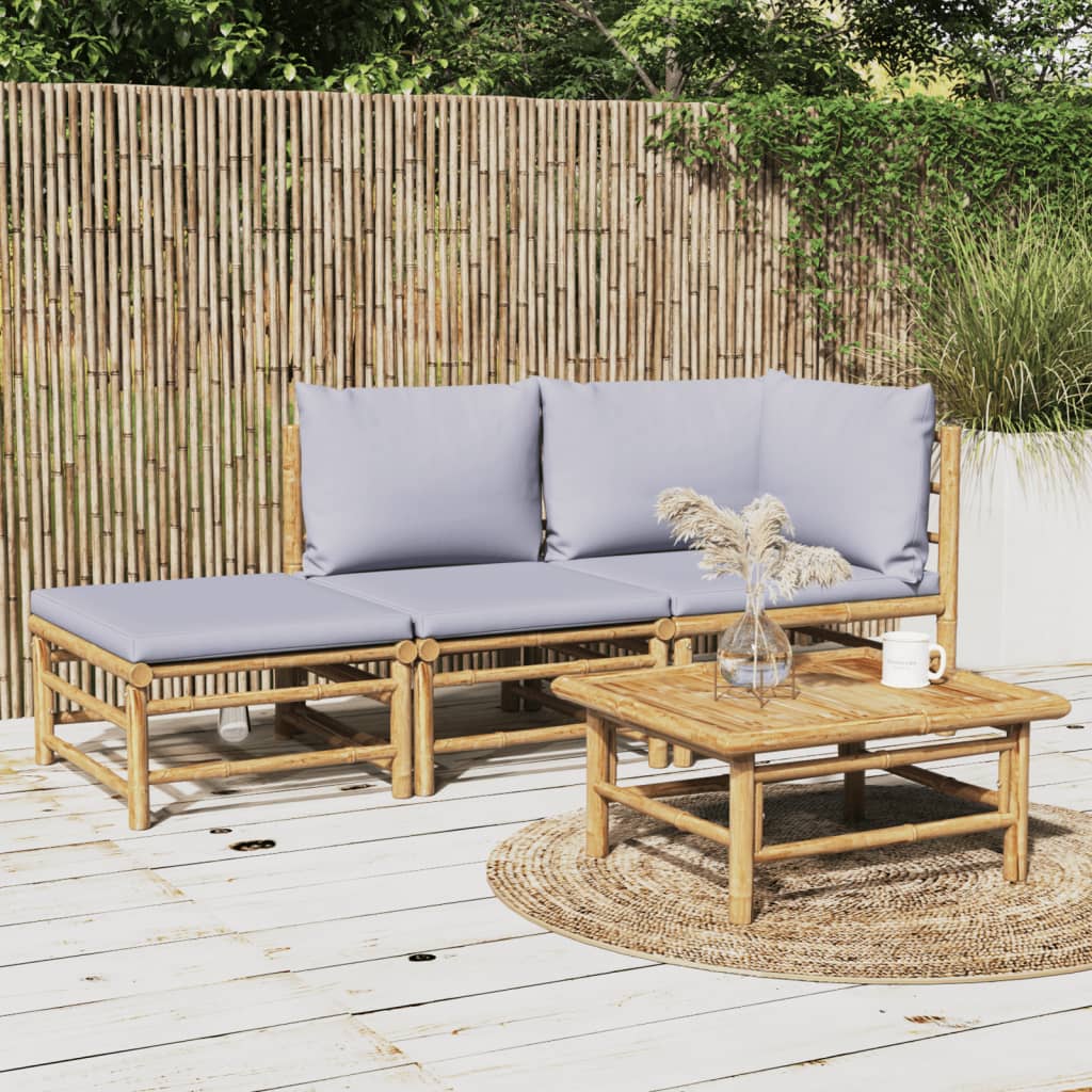 Genieße eine Tasse Kaffee oder Tee bei schönem Wetter in deinem Außenbereich mit diesem eleganten Garten-Lounge-Set aus Bambus! Langlebiges Material: Bambus ist für seine Flexibilität und Festigkeit bekannt. Bambus-Möbel sind eine gute Wahl, wenn du nach robusten Gartenmöbeln aus natürlichen Materialien suchst.Bequemes Sitzgefühl: Dank der Rückenlehne und der Armlehnen bietet das Gartensofa höchsten Sitzkomfort. Zum hohen Sitzkomfort tragen auch die dick gepolsterten Sitz- und Rückenkissen bei.Praktischer Tisch: Der robuste Tisch bietet den perfekten Platz für Speisen, Getränke und verschiedene Dekoartikel.Modularer Aufbau: Das Loungemöbel-Set ist flexibel und leicht zu umstellen, so dass du es mit anderen modularen Sofateilen im Webshop kombinieren kannst, um dein eigenes persönliches Outdoor-Lounge-Set zu erstellen! Hinweis:Damit deine Gartenmöbel lange schön bleiben, empfehlen wir dir, sie mit einer wasserdichten Hülle zu schützen.Gut zu wissen:Um die Montage so einfach wie möglich zu machen, wird jedes Produkt mit einer Anleitung geliefert.
