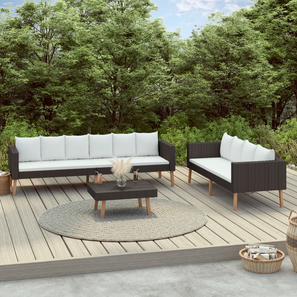 - Material: PE-Rattan, pulverbeschichteter Stahl, Stoff (100% Polyester), Eukalyptus mit Teakholzoptik