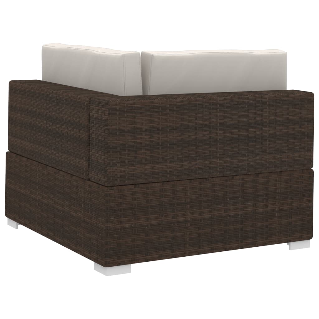 Diese Poly-Rattan-Sofagarnitur besteht aus 2 Ecksofas, 1 Mittelsofa, 5 Rückenkissen und 3 Sitzkissen und bietet einen stilvollen Sitzbereich für Ihren Garten oder Ihre Terrasse. Dank des wetterfesten PE-Rattans ist das Terrassensofa-Set pflegeleicht, strapazierfähig und für den täglichen Gebrauch im Freien geeignet. Die pulverbeschichteten Stahlrahmen machen das Set stabil und langlebig. Es ist sehr leicht und die modularen Abschnitte können leicht in verschiedene Konfigurationen kombiniert werden. Dieses Set wird auch samt äußerst bequemen, dick gepolsterten Rücken- und Sitzpolstern geliefert, die für ultimativen Komfort sorgen. Die pflegeleichten Polyesterbezüge können auch abgenommen und gewaschen werden. Dieses Set muss zusammengebaut werden. Hinweis: Wir empfehlen, das Set bei Regen, Schnee und Frost abzudecken, um eine lange Lebensdauer zu gewährleisten.
