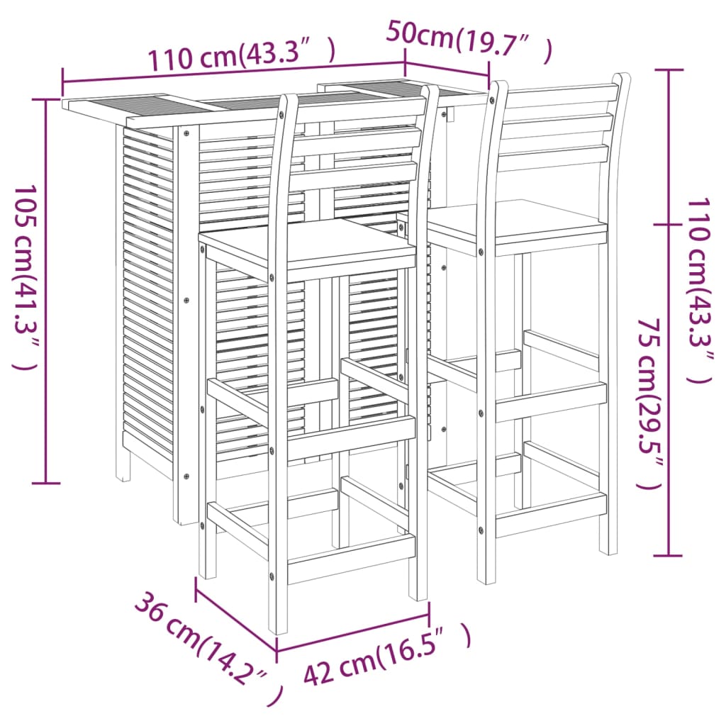 Dieses Gartenbar-Set aus Holz weist ein elegantes Design auf und ist ein echter Hingucker in deinem Garten, Hof oder auf deiner Terrasse. Massives Akazienholz: Akazien-Massivholz ist ein schönes Naturmaterial. Akazienholz ist ein tropisches Hartholz, das dicht, robust und langlebig ist. Außerdem lassen sich Gartentisch und Stühle dank der geölten Oberfläche leicht reinigen.Stabiler Holzrahmen: Die Holzrahmen sorgen für Robustheit und Stabilität.Praktische Ablagen: Der Bistrotisch verfügt über 2 Ablagen, um Speisen und Getränke griffbereit zu halten.Bequeme Barhocker: Die Fußstützen der Barhocker aus Holz sorgen für zusätzlichen Sitzkomfort.Zeitloses Aussehen: Das schlichte Design des Bistrotisches und der Hocker aus Holz machen sie zu einer zeitlosen Investition für dein Zuhause. Hinweis:Um die Lebensdauer deiner Gartenmöbel zu verlängern, empfehlen wir dir, sie mit einer wasserdichten Hülle zu schützen.