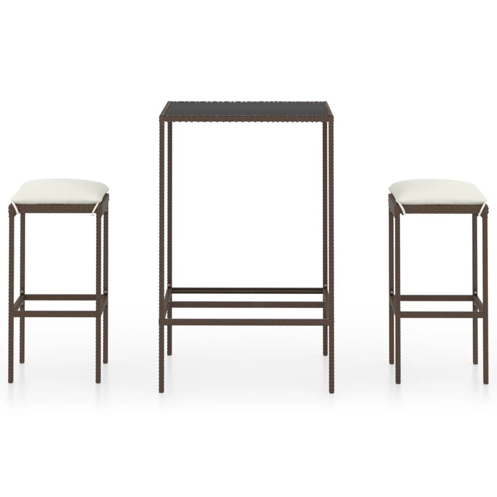 Dieses stilvolle Gartenbar-Set bietet einen gemütlichen und komfortablen Ort, damit Sie Zeit mit Ihrer Familie und Freunden genießen können. Dieser Stehtisch verfügt über einen pulverbeschichteten Stahlrahmen, der mit wasserbeständigem PE-Rattan überzogen ist und jahrelangen Einsatz im Freien gewährleistet. Darüber hinaus erleichtert die Tischplatte aus gehärtetem Glas die Reinigung. Die Barhocker haben eine stabile Stahlrahmenkonstruktion und sind aus wetterbeständigem PE-Rattan gefertigt, das für Stabilität sorgt und sich leicht bewegen lässt. Das Sitzkissen und die eingebaute Fußstütze sorgen für zusätzlichen Sitzkomfort des Barhockers. Hinweis: Um die Lebensdauer Ihrer Gartenmöbel zu verlängern, empfehlen wir Ihnen, diese regelmäßig zu reinigen und im Freien vor Niederschlägen oder starken Sonnenstrahlen zu schützen.Reinigung: Verwenden Sie eine milde SeifenlösungLagerung:Wenn möglich, an einem kühlen, trockenen Ort im Innenbereich lagern. Wenn das Produkt im Freien gelagert wird, schützen Sie es mit einer wasserdichten Abdeckung. Wischen und trocknen Sie das überschüssige Wasser oder den Schnee, nach Regen oder Schneefall. Sorgen Sie für eine ausreichende Luftzirkulation, um feuchtigkeitsbedingte Schäden zu vermeiden.