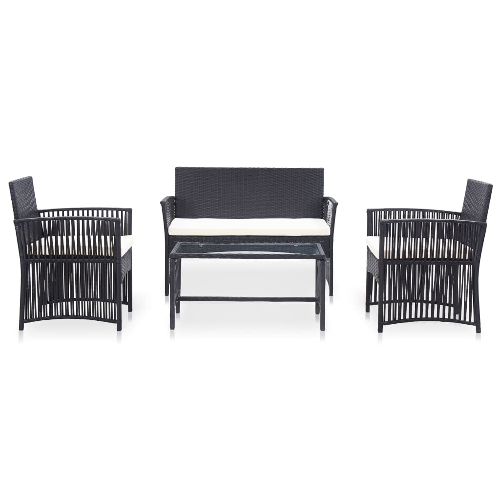 Verschönern Sie Ihren Außenbereich und machen Sie ihn so einladend wie Ihre Wohnungseinrichtung mit unserem 4-teiligen Garten-Lounge-Set! Dieses Set kombiniert Stil und Funktionalität, wodurch es zum Mittelpunkt Ihrer Terrasse oder Ihres Gartens wird. Das gesamte Set kann das ganze Jahr über im Freien verwendet werden. Dank des wetterfesten und wasserdichten PE-Rattans ist das Lounge-Set leicht zu reinigen, strapazierfähig und für den täglichen Gebrauch geeignet. Die Garten-Sofagarnitur verfügt über einen stabilen pulverbeschichteten Stahlrahmen und ist dementsprechend äußerst langlebig. Dicke gepolsterte Kissen sorgen für höchsten Sitzkomfort in Ihrer Freizeit. Der Bezug ist zum einfachen Waschen mit einem Reißverschluss versehen. Die Lieferung umfasst 1 Bank, 2 Stühle und 1 Couchtisch. Hinweis: Wir empfehlen, die Gartenmöbel bei Regen, Schnee und Frost abzudecken, um ihre Lebensdauer zu verlängern.