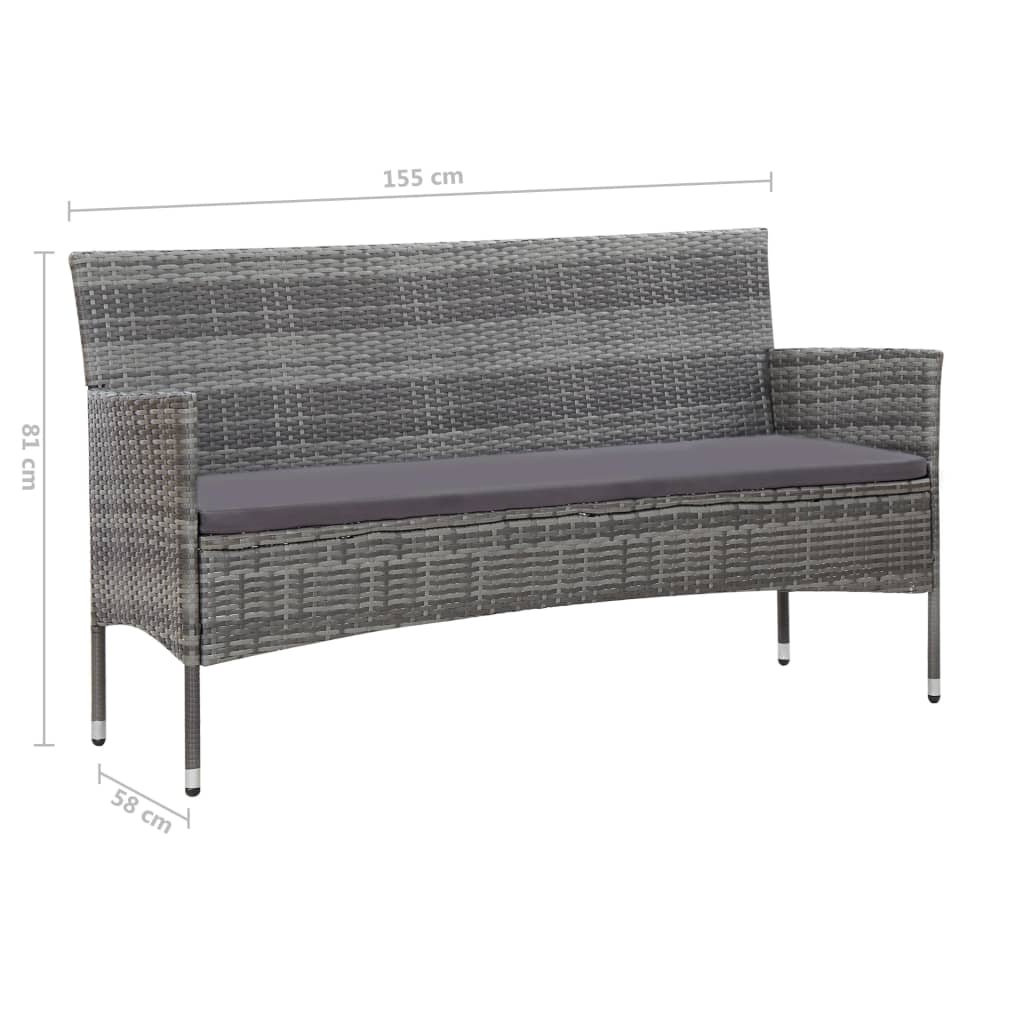 Diese Garten-Sofagarnitur aus PE-Rattan ist eine tolle Bereicherung für Ihren Außenbereich. Mit ihrem geradlinigen, stilvollen Design verleiht sie Ihrem Garten, Balkon oder Ihrer Terrasse einen Hauch moderner Eleganz. Hergestellt aus wasserabweisendem und witterungsbeständigem PE-Rattan, ist dieses Lounge-Set leicht zu reinigen, strapazierfähig und für den täglichen Gebrauch bestens geeignet. Die pulverbeschichteten Stahlgestelle verleihen dem Möbel-Set Robustheit und Langlebigkeit. Dank der Leichtbauweise lassen sich die Möbelstücke ganz einfach umstellen. Des Weiteren sorgen die dick gepolsterten Sitzkissen für zusätzlichen Komfort. Deren Bezüge können leicht abgenommen und gewaschen werden. Darüber hinaus ist dieses Set einfach zu montieren. Hinweis: Wir empfehlen, das Set bei Regen, Schnee oder Frost abzudecken.