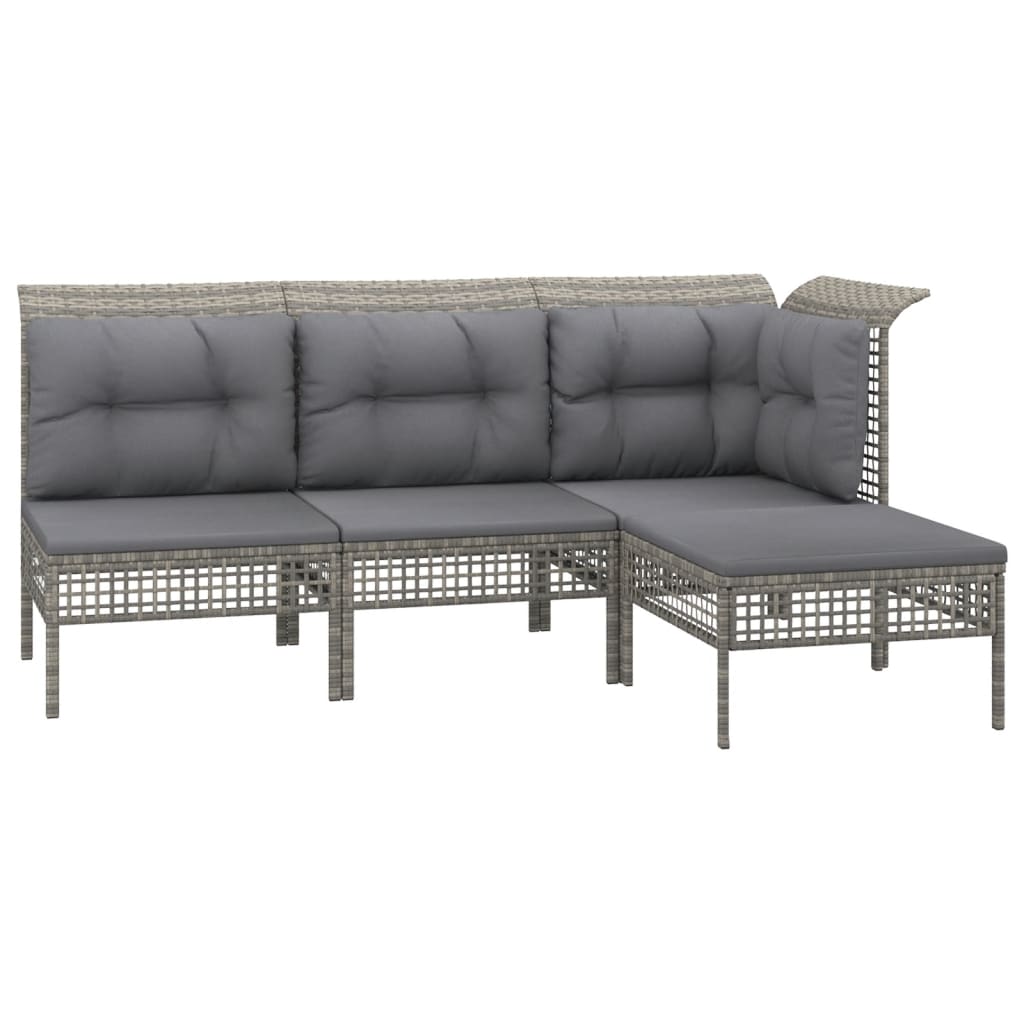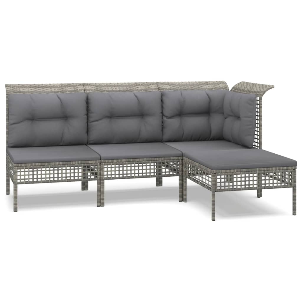 Genieße eine gemütliche Zeit in deinem Außenbereich mit diesem Garten-Lounge-Set! Es ist eine perfekte Bereicherung für deinen Garten bzw. deine Terrasse und hinterlässt einen bleibenden Eindruck! Wetterfestes Material: PE-Rattan, auch als Poly Rattan bekannt, ist witterungsbeständig und pflegeleicht. Seine Oberfläche weist lange Zeit eine ansprechende Optik auf. Es bietet hohe Qualität, Komfort und einen ästhetisches Look.Stabiles Gestell: Dank der pulverbeschichteten Stahlgestelle ist das Outdoor-Lounge-Set robust, stabil und für den täglichen Einsatz im Freien perfekt geeignet.Bequemes Sitzgefühl: Dank der Rückenlehnen bietet das Garten-Lounge-Set zusätzlichen Sitzkomfort. Zum hohen Sitzkomfort tragen auch die dick gepolsterten Kissen bei.Modulares Design: Jedes einzelne Element lässt sich flexibel und leicht umstellen und mit anderen modularen Segmenten aus unserem Webshop kombinieren, um deine ganz persönliches Garten-Lounge-Set zu erstellen! Hinweis:Damit deine Gartenmöbel lange schön bleiben, empfehlen wir dir, sie mit einer wasserdichten Hülle zu schützen.