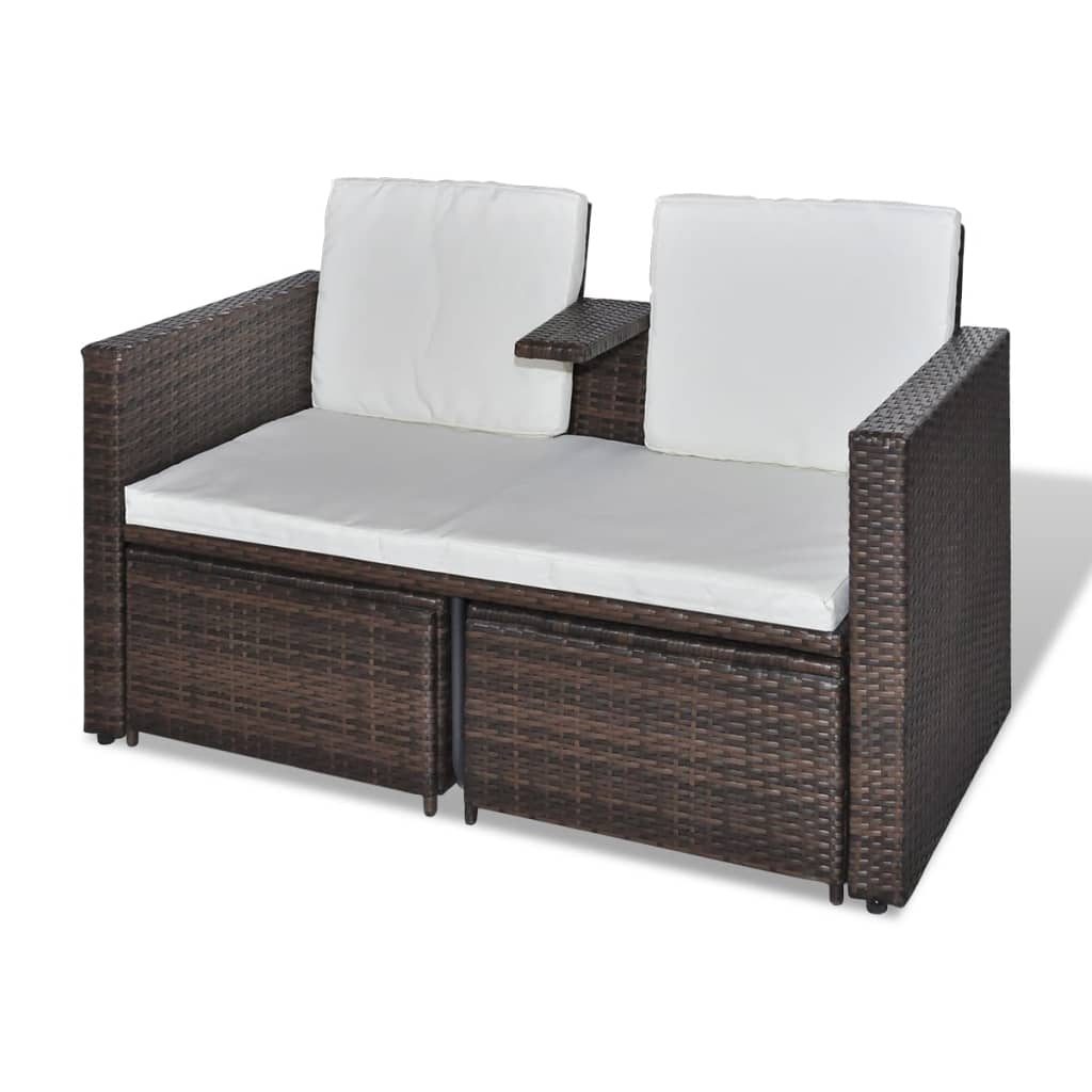 Dieses Outdoor-Lounge-Set aus Rattan umfasst ein ästhetisch und ergonomisch gestaltetes 2-Sitzer-Gartensofa und 2 dazu passende Füßstützen. Es wird mit Bestimmtheit zum Hingucker in Ihrem Außenrelaxbereich. Dieses Lounge-Set ist aus hochwertigem PE-Rattan geflochten und mit einer weichen, cremeweißen Polsterung versehen, die sich angenehm anfühlt. Das PE-Material ist absolut wasserdicht und wetterfest, UV-beständig, schmutzabweisend und leicht zu reinigen, sodass dieses Gartenbett das ganze Jahr über in gutem Zustand bleibt. Die 2 mitgelieferten Fußstützen können, wenn nicht benutzt, unter dem Stuhl verstaut werden. Dies bietet mobile Flexibilität und lässt sich leicht an jede Umgebung umstellend anpassen. Die abnehmbaren Sitz- und Rückenpolster sorgen für den ultimativen Sitzkomfort.