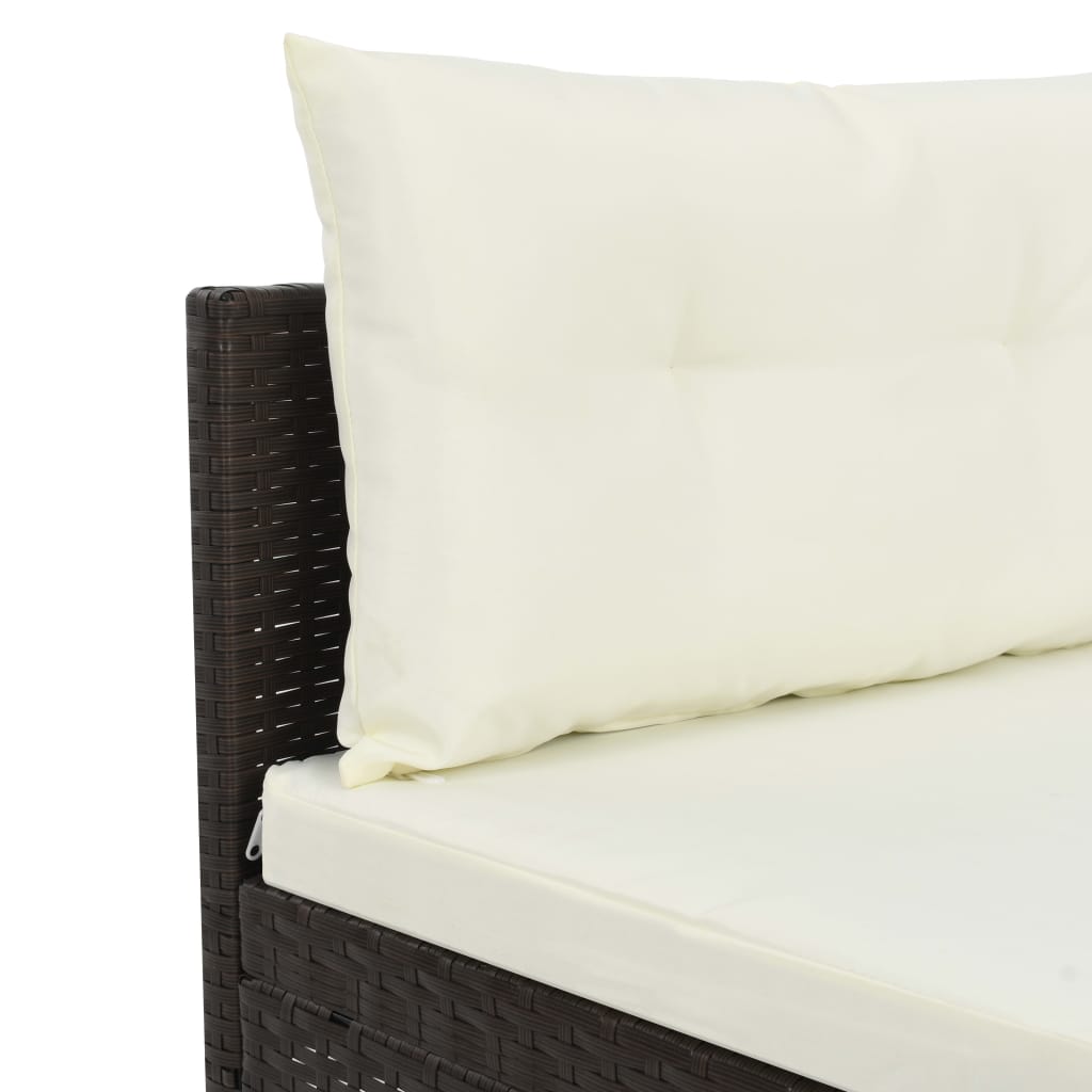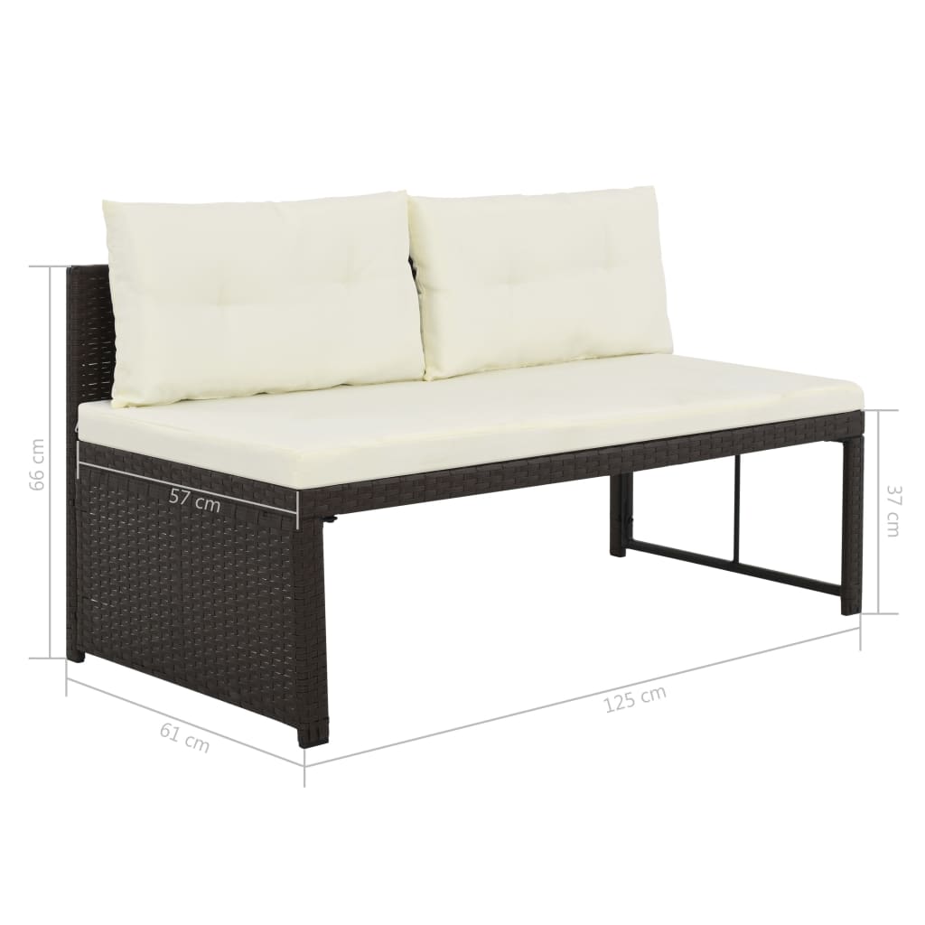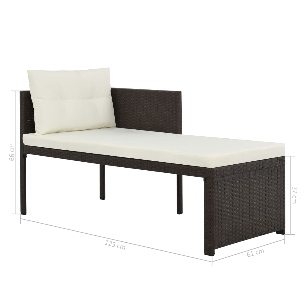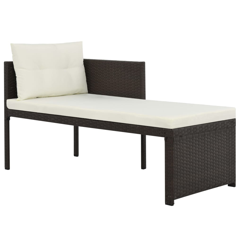 Dieses 4-teilige Gartenmöbel-Set wird ein echter Hingucker in Ihrem Garten, auf Ihrem Balkon bzw. auf der Terrasse sein. Es ist die perfekte Kombination aus Stil und Funktionalität. Dank des wasserabweisenden PE-Rattans ist diese Sofagarnitur sowohl leicht zu reinigen als auch langlebig. Die pulverbeschichteten Stahlrahmen machen das Set besonders robust und stabil. Zudem wird es samt äußerst bequemen, dick gepolsterten Polstern und Kissen geliefert, die den höchsten Sitzkomfort bieten. Die pflegeleichten Polyesterbezüge können abgenommen und gewaschen werden. Im Lieferumfang enthalten sind 1 Tisch, 1 Fußhocker, 1 2-Sitzer-Sofa, 1 Sonnenliege, 3 Sitzkissen und 3 Rückenkissen. Hinweis: Wir empfehlen, das Set bei Regen, Schnee und Frost für eine lange Lebensdauer abzudecken.
