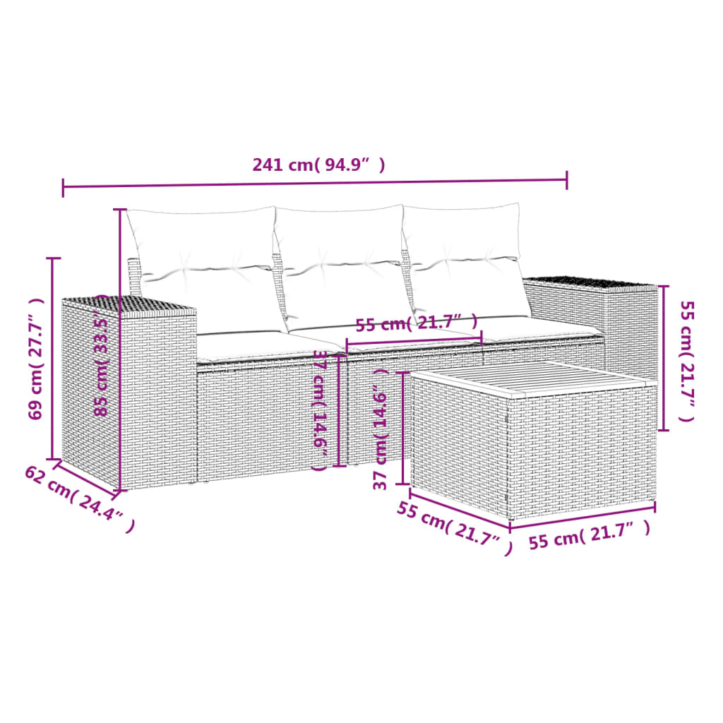 Diese Garten-Sofagarnitur ist die perfekte Ergänzung zu deinem Garten, deiner Terrasse oder deinem Innenhof. Sie bietet einen bequemen und einladenden Platz, um mit Familie und Freunden zu plaudern oder dich einfach nur zu entspannen und das Leben im Freien zu genießen. Langlebiges Material: PE-Rattan, auch als Poly Rattan bekannt, ist ein robustes, pflegeleichtes synthetisches Material, das die Optik von natürlichem Rattan aufweist. Es kennzeichnet sich durch ein geringes Eigengewicht und lässt sich einfach reinigen. Aufgrund seiner Haltbarkeit und Witterungsbeständigkeit wird es häufig bei der Herstellung von Gartenmöbeln verwendet.Stabile und pflegeleichte Tischplatte: Dieser Gartentisch besitzt eine Tischplatte aus Akazienholz, die robust und langlebig ist und sich leicht mit einem feuchten Tuch reinigen lässt. Bequemes Sitzerlebnis: Dieser Gartensessel mit dick gepolsterten Kissen bietet ein angenehmes Sitzgefühl. Abnehmbarer und waschbarer Bezug: Diese Sitzkissen verfügen über abnehmbare Bezüge für einfaches Waschen und Pflegen.Modulares Design: Dank des modularen Designs lassen sich die Gartenmöbel völlig flexibel und einfach umstellen, um deinen Außenbereich ganz individuell zu gestalten. Gut zu wissen:Wir empfehlen dir, deine Gartenmöbel mit einer wasserdichten Hülle zu schützen, um lange Zeit eine ansprechende Optik aufzuweisen.