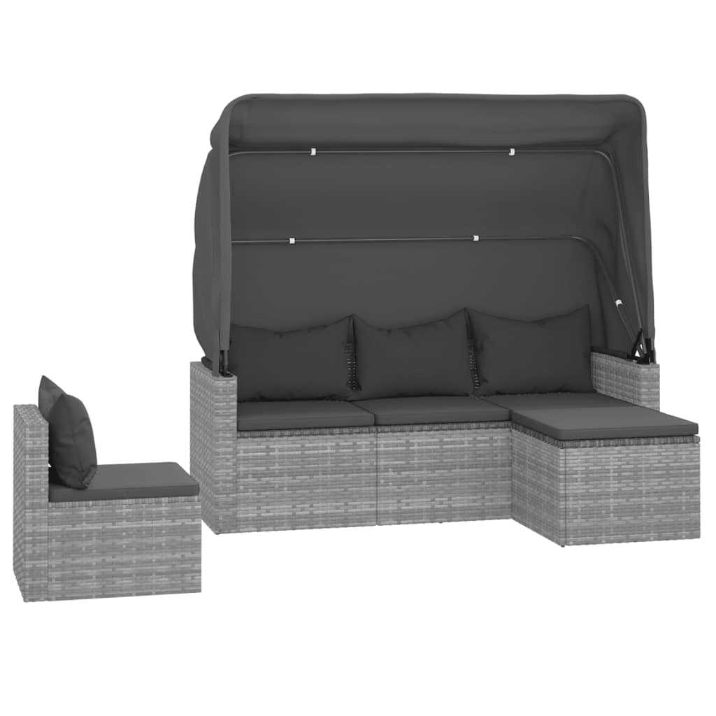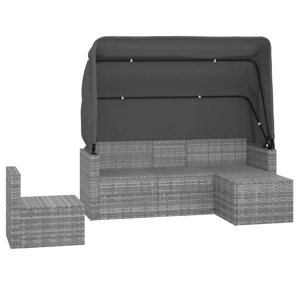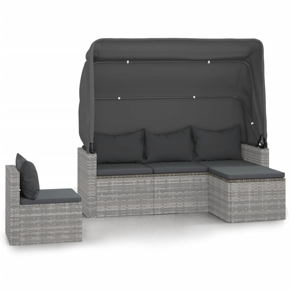 Diese komfortable Garten-Sofagarnitur ist eine perfekte Kombination aus Stil und Funktionalität. Langlebiges Material: PE-Rattan, auch als Poly Rattan bekannt, ist witterungsbeständig und pflegeleicht. Seine Oberfläche weist lange Zeit eine ansprechende Optik auf. Es ist kostengünstiger als andere Materialien und bietet gleichzeitig hohe Qualität, Komfort und einen ästhetisches Look.Faltbares Dach: Das Dach lässt sich einfach an deine Bedürfnisse anpassen. Öffne das Dach, um Sonnenlicht zu genießen, und schließe es, um dich im Schatten zu entspannen. Es blockiert wirksam schädliche UV-Strahlen und schützt empfindliche Haut vor Sonnenbrand.Stabiler Rahmen: Der pulverbeschichtete Stahlrahmen verleihen der Outdoor-Sofagarnitur Robustheit und Stabilität.Praktischer Fußhocker: Der Hocker bietet Platz zum Ausruhen der Füße beim Liegen auf dem Sofa, kann aber auch als zusätzliche Sitzgelegenheit dienen.Bequemes Sitzerlebnis: Dank der dick gepolsterten Sitz- und Rückenkissen ist die Sogarnitur aus Poly Rattan sehr bequem. Gut zu wissen:Um die Montage so einfach wie möglich zu machen, wird jedes Produkt mit einer Anleitung geliefert. Hinweis:Damit deine Gartenmöbel lange schön bleiben, empfehlen wir dir, sie mit einer wasserdichten Hülle zu schützen.