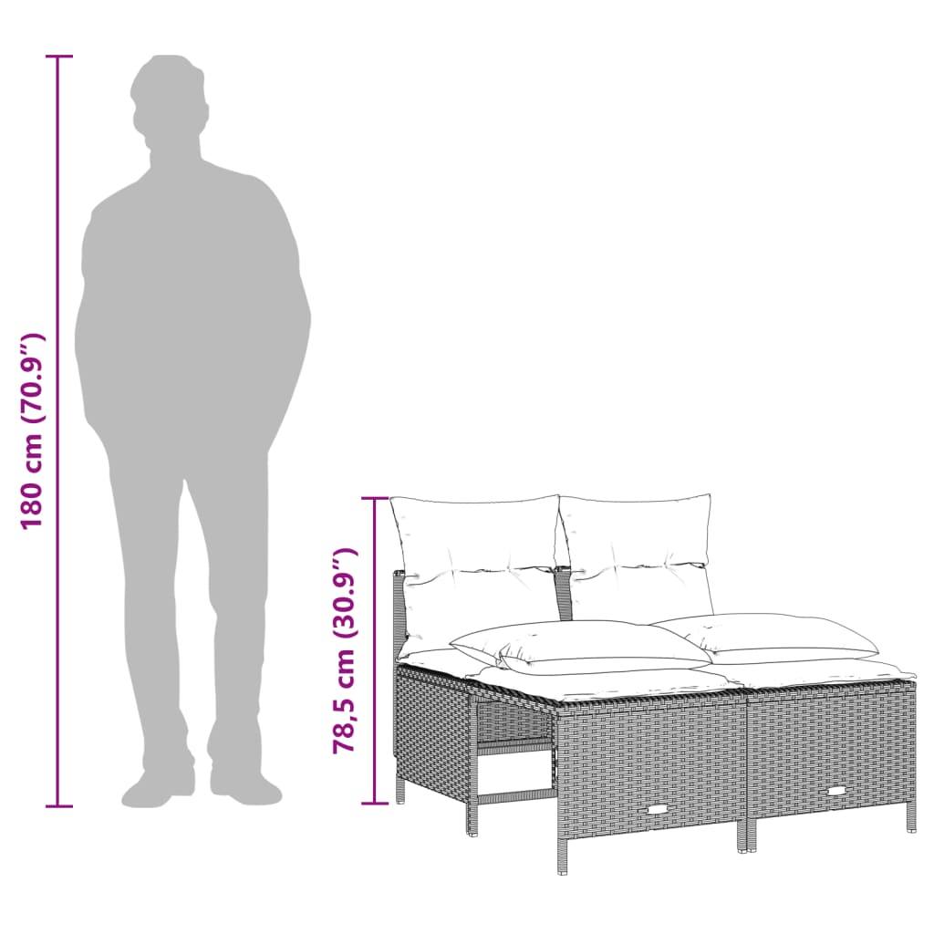 Diese Garten-Sofagarnitur ist die perfekte Ergänzung zu deinem Garten, deiner Terrasse oder deinem Innenhof. Sie bietet einen bequemen und einladenden Platz, um mit Familie und Freunden zu plaudern oder dich einfach nur zu entspannen und das Leben im Freien zu genießen. Langlebiges Material: PE-Rattan, auch als Poly Rattan bekannt, ist ein robustes, pflegeleichtes synthetisches Material, das die Optik von natürlichem Rattan aufweist. Es kennzeichnet sich durch ein geringes Eigengewicht und lässt sich einfach reinigen. Aufgrund seiner Haltbarkeit und Witterungsbeständigkeit wird es häufig bei der Herstellung von Gartenmöbeln verwendet. Bequemes Sitzerlebnis: Dieser Gartensessel mit dick gepolsterten Kissen bietet ein angenehmes Sitzgefühl. Vielseitiger Fußhocker: Der Hocker ist vielseitig einsetzbar und dient als bequeme Fußstütze beim Entspannen auf dem Sofa oder als zusätzlicher Sitzplatz in deinem Garten. Abnehmbarer und waschbarer Bezug: Diese Sitzkissen verfügen über abnehmbare Bezüge für einfaches Waschen und Pflegen. Robuster und stabiler Rahmen: Dank des pulverbeschichteten Stahlrahmens ist das Möbelstück robust, stabil und für den täglichen Einsatz im Außenbereich geeignet. Gut zu wissen:Wir empfehlen dir, deine Gartenmöbel mit einer wasserdichten Hülle zu schützen, um lange Zeit eine ansprechende Optik aufzuweisen.