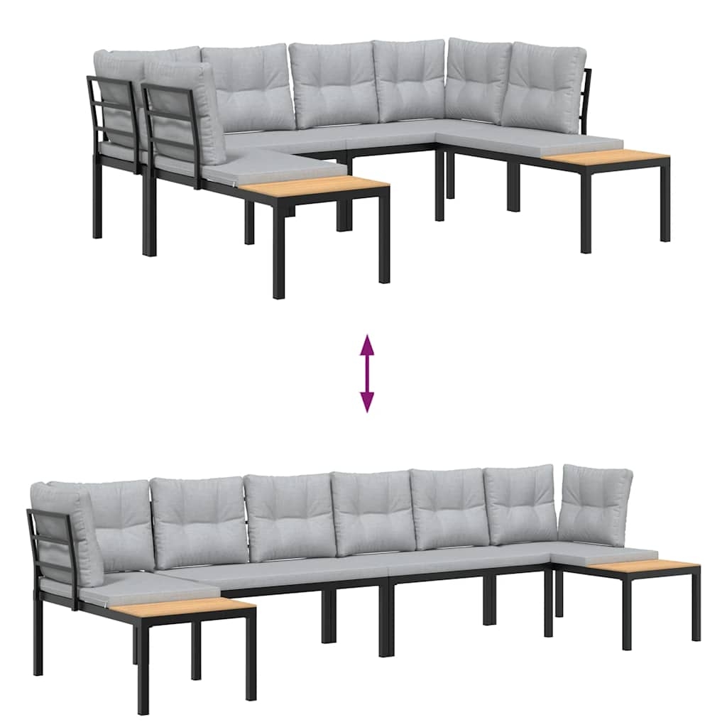 Diese Garten-Sofagarnitur ist die perfekte Ergänzung zu deinem Garten, deiner Terrasse oder deinem Innenhof. Sie bietet einen bequemen und einladenden Platz, um mit Familie und Freunden zu plaudern oder dich einfach nur zu entspannen und das Leben im Freien zu genießen. Robustes und stabiles Gestell: Der pulverbeschichtete Stahlgestell ist stark, stabil, langlebig sowie korrosions- und wetterbeständig, um eine lang anhaltende Leistung zu gewährleisten.Praktischer Beistelltisch: Dieses Gartenmöbel verfügt über einen Beistelltisch, auf dem du deine Sachen griffbereit ablegen kannst.Bequemes Sitzerlebnis: Dieser Gartensessel mit dick gepolsterten Kissen bietet ein angenehmes Sitzgefühl. Abnehmbarer und waschbarer Bezug: Diese Sitzkissen verfügen über abnehmbare Bezüge für einfaches Waschen und Pflegen.Modulares Design: Dank des modularen Designs lassen sich die Gartenmöbel völlig flexibel und einfach umstellen, um deinen Außenbereich ganz individuell zu gestalten. Gut zu wissen:Wir empfehlen dir, deine Gartenmöbel mit einer wasserdichten Hülle zu schützen, um lange Zeit eine ansprechende Optik aufzuweisen.