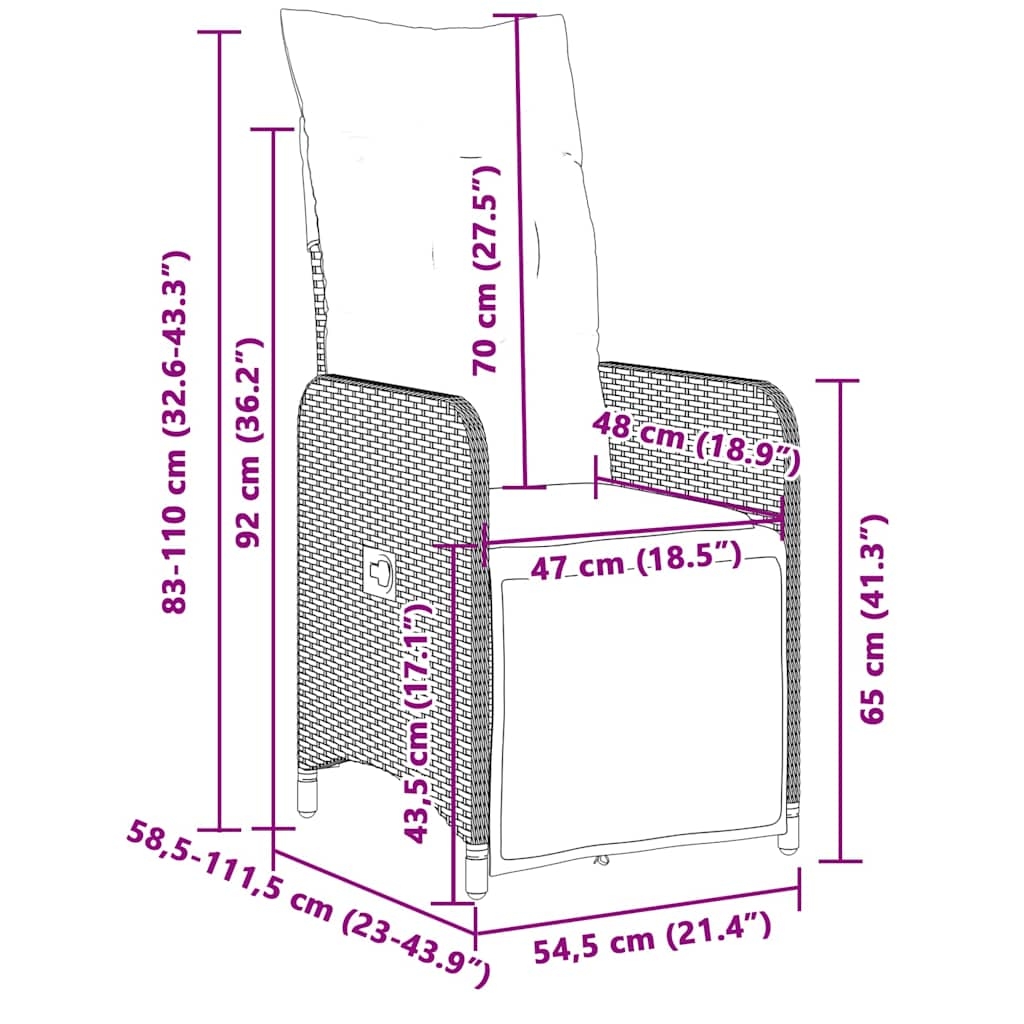 Genieße einen Kaffee oder unterhalte dich mit deiner Familie und deinen Freunden im Garten, Hinterhof oder auf dem Balkon mit diesem bequemen Bistro-Set! Langlebiges Material: PE-Rattan, auch als Poly Rattan bekannt, ist ein robustes, pflegeleichtes synthetisches Material, das die Optik von natürlichem Rattan aufweist. Es kennzeichnet sich durch ein geringes Eigengewicht und lässt sich einfach reinigen. Aufgrund seiner Haltbarkeit und Witterungsbeständigkeit wird es häufig bei der Herstellung von Gartenmöbeln verwendet.Verstellbare Rückenlehne und verstellbares Fußteil: Der Gartensessel ist mit einem Griff versehen. So kannst du die Rückenlehne und das Fußteil durch Ziehen des Griffs verstellen und sie danach schnell wieder in ihre ursprüngliche Position bringen.Bequemes Sitzerlebnis: Dieser Gartensessel mit dick gepolsterten Kissen bietet ein angenehmes Sitzgefühl.Abnehmbarer und waschbarer Bezug: Die Sitzkissen verfügen über abnehmbare Bezüge, die sich ganz einfach waschen und reinigen lassen. Dank der Klappen an der Rückseite können die Rückenkissen ganz einfach an den Rückenlehnen befestigt werden.Tischplatte aus Glas: Die Tischplatte des Gartentisches besteht aus starkem und langlebigem Hartglas, sodass sie leicht mit einem feuchten Tuch gereinigt werden kann und deinem Außenbereich einen Hauch von Eleganz verleiht. Gut zu wissen:Wir empfehlen dir, deine Gartenmöbel mit einer wasserdichten Hülle zu schützen, um lange Zeit eine ansprechende Optik aufzuweisen.