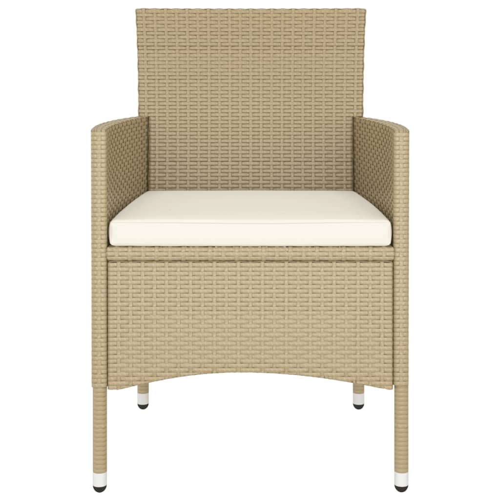 An diesem stilvollen Garten-Bistro-Set können Sie eine entspannte und angenehme Zeit mit Ihrer Familie und Ihren Freunden verbringen. Mit einem pulverbeschichteten Stahlrahmen versehen, der mit wetterfestem PE-Rattan mit UV-Schutz umwickelt ist, sind der Tisch und die Stühle langlebig und stabil. Die Stühle sind zudem mit einer geschwungenen Rückenlehne und Armlehnen ausgestattet und bieten somit höchsten Komfort. Zu hohem Sitzkomfort tragen auch die mitgelieferten Kissen bei, deren Bezüge mit Reißverschluss sich zum einfachen Waschen abnehmen lassen. Die Tischplatte ist aus Hartglas gefertigt, das sich ganz einfach reinigen lässt. Die zwei Hocker bieten zusätzliche Sitzgelegenheiten. Dank der Leichtbauweise lässt sich jedes Möbelstück leicht umstellen und transportieren. Hinweis: Um die Lebensdauer deiner Gartenmöbel zu verlängern, empfehlen wir dir, sie mit einer wasserdichten Schutzhülle abzudecken.