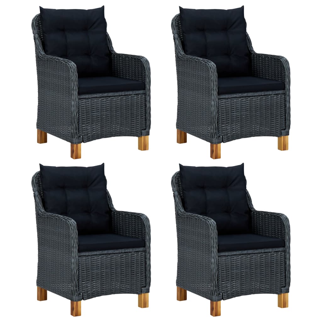 Schaffen Sie mit dieser Garten-Essgruppe eine überzeugende und zusammenhängende Ästhetik in Ihrem Außenbereich! Der Esstisch ist aus massivem Akazienholz gefertigt und mit einem Ölfinish versehen, was ihn stabil, langlebig und pflegeleicht macht. Der Gartenstuhl verfügt über einen pulverbeschichteten Stahlrahmen, der mit rundem PE-Rattan überzogen ist, und ist daher robust und leicht zu reinigen. Die dick gepolsterten Kissen sorgen für zusätzlichen Komfort. Der Kissenbezug ist mit einem Reißverschluss versehen und somit abnehmbar und waschbar. Die Beine aus massivem Akazienholz tragen zur Robustheit und Stabilität des Möbelsets bei. Darüber hinaus lassen sich die Gartenstühle dank ihrer Leichtbauweise auch leicht umstellen. Wichtiger Hinweis: Wir empfehlen, die Essgruppe bei Regen, Schnee und Frost für eine lange Lebensdauer abzudecken.