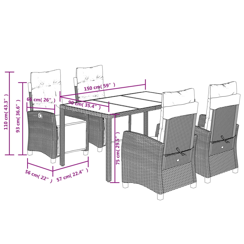 Diese Garten-Essgruppe ist eine ideale Wahl für Mahlzeiten im Freien oder einfach nur zum Entspannen im Garten, Hinterhof oder auf der Terrasse. Langlebiges Material: PE-Rattan, auch als Poly Rattan bekannt, ist ein robustes, pflegeleichtes synthetisches Material, das die Optik von natürlichem Rattan aufweist. Es kennzeichnet sich durch ein geringes Eigengewicht und lässt sich einfach reinigen. Aufgrund seiner Haltbarkeit und Witterungsbeständigkeit wird es häufig bei der Herstellung von Gartenmöbeln verwendet.Verstellbare Rückenlehne und Fußstütze: Der Gartensessel ist mit einem Griff versehen. So kannst du die Rückenlehne und den Fußteil durch Ziehen des Griffs verstellen und sie danach schnell wieder in ihre ursprüngliche Position bringen.Stabile und pflegeleichte Tischplatte: Dieser Gartentisch besitzt eine Tischplatte aus Akazienholz, die robust und langlebig ist und sich leicht mit einem feuchten Tuch reinigen lässt.Bequemes Sitzerlebnis: Dieser Gartensessel mit dick gepolsterten Kissen bietet ein angenehmes Sitzgefühl.Abnehmbarer und waschbarer Bezug: Diese Sitzkissen verfügen über abnehmbare Bezüge für einfaches Waschen und Pflegen. Gut zu wissen:Wir empfehlen dir, deine Gartenmöbel mit einer wasserdichten Hülle zu schützen, um lange Zeit eine ansprechende Optik aufzuweisen.