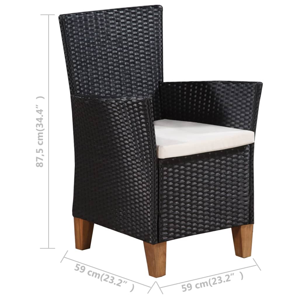 Genießen Sie im Freien mit Ihrer Familie und Freunden ein gutes Essen mit unserer Garten-Essgruppe! Der Gartentisch besteht aus massivem Akazienholz, das mit Öl behandelt worden ist, so dass er robust und langlebig ist. Es hat ein zeitloses Design und strahlt einen rustikalen Charme aus. Dank des wasserfesten PE-Rattans sind die Sessel strapazierfähig und pflegeleicht. Die Stahlrahmen und die Füße aus Akazien-Massivholz machen die Gartenstühle robust und stabil. Die Stühle werden mit bequemen Sitzpolstern geliefert. Die pflegeleichten Polsterbezüge aus Polyestergewebe können bei Bedarf abgenommen und gewaschen werden. Die Essgruppe ist einfach zu montieren.