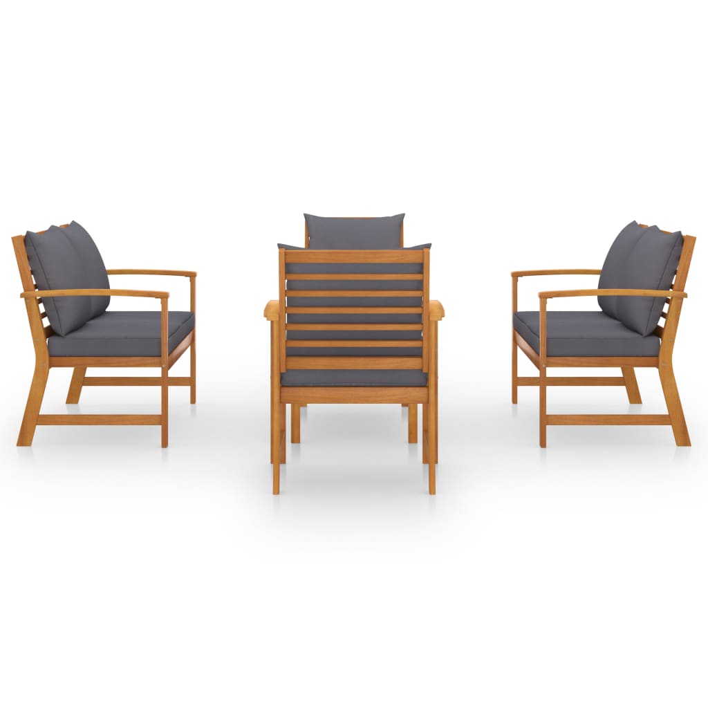 Dieses Lounge-Set aus Holz stellt eine perfekte Kombination aus Stil und Funktionalität dar. Auf dieser Sitzgruppe können Sie entspannende und beruhigende Momente mit Ihrer Familie und Freunden im Garten verbringen. Dank des massiven Akazienholzrahmens ist die Sofagarnitur stark, robust und langlebig; das mit Holzöl behandelte Gartenmöbel ist für den Außenbereich geeignet. Die abnehmbaren Sitz- und Rückenkissen sind dick gepolstert, um einen hohen Sitzkomfort zu bieten. Ein Couchtisch mit einzigartigem Lattendesign ist ebenfalls dabei, um Snacks, Getränke oder andere wichtige Sachen stets griffbereit zu haben. Dank des modularen Aufbaus können alle Teile nach Bedarf angeordnet und angepasst werden. Bitte beachten: Wir empfehlen, das Set bei Regen, Schnee und Frost abzudecken.