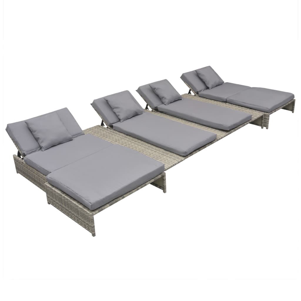 Dieses qualitativ hochwertige Garten-Lounge-Set aus Rattan kombiniert Stil und Funktionalität und wird zum Hingucker in Ihrem Garten oder auf Ihrer Terrasse. Dank des wetterbeständigen und wasserfesten PE-Rattans ist das Gartenmöbel-Set leicht zu reinigen, strapazierfähig und für die tägliche Nutzung bestens geeignet. Das Lounge-Set verfügt über einen robusten und langlebigen pulverbeschichteten Stahlrahmen. Die Rückenlehnen der Doppelliege und Sofas können für die bequemste Position eingestellt werden. Die dicken, abnehmbaren Polster und Kissen tragen zum Liege- und Sitzkomfort bei. Die große Sonnenliege bietet Platz für 2 Personen und Sie können Ihre Getränke, Handys, Bücher oder andere Gegenstände auf die Ablageseiten der Liegen abstellen. Das Set ist leicht und modular und kann in verschiedenen Konfigurationen aufgestellt werden, um in jede Umgebung zu passen. Lieferung beinhaltet 1 Doppel-Sonnenliege, 2 Sofas, 2 Ottomanen, 6 Sitzpolster und 4 Kissen. Hinweis: Wir empfehlen, das Sonnenliegen-Set bei Regen, Schnee und Frost abzudecken.