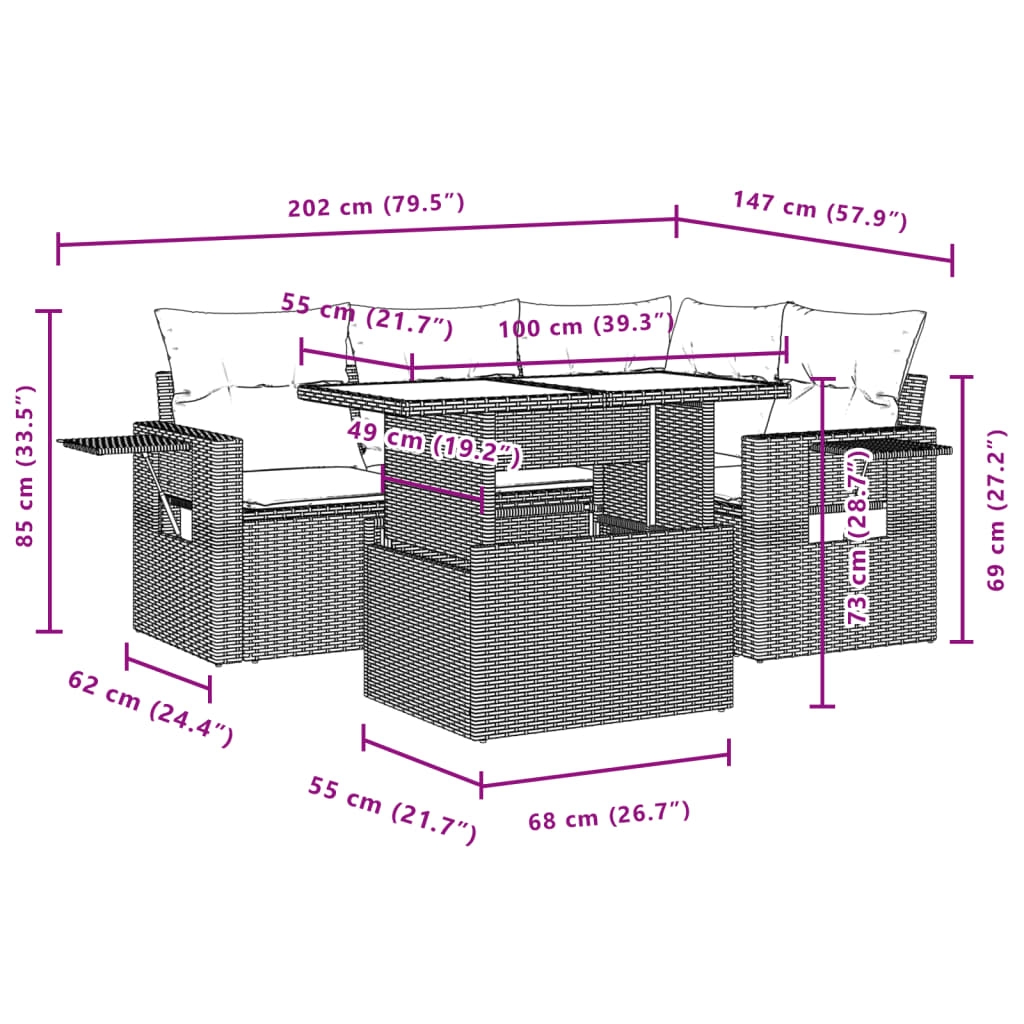 Diese Garten-Sofagarnitur ist die perfekte Ergänzung zu deinem Garten, deiner Terrasse oder deinem Innenhof. Sie bietet einen bequemen und einladenden Platz, um mit Familie und Freunden zu plaudern oder dich einfach nur zu entspannen und das Leben im Freien zu genießen. Langlebiges Material: PE-Rattan, auch als Poly Rattan bekannt, ist ein robustes, pflegeleichtes synthetisches Material, das die Optik von natürlichem Rattan aufweist. Es kennzeichnet sich durch ein geringes Eigengewicht und lässt sich einfach reinigen. Aufgrund seiner Haltbarkeit und Witterungsbeständigkeit wird es häufig bei der Herstellung von Gartenmöbeln verwendet.Verstellbare Tischplatte: Die Tischplatte lässt sich anheben, um den Gartentisch höher zu machen und ihn von einem Couchtisch in einen Esstisch zu verwandeln. Er eignet sich daher perfekt für Gäste oder Mahlzeiten im Freien.Praktischer Beistelltisch: Diese Gartengarnitur verfügt über klappbare Ablagen mit Gasfedern an den Armlehnen, auf denen du verschiedene Sachen griffbereit aufbewahren kannst. Bequemes Sitzerlebnis: Dieser Gartensessel mit dick gepolsterten Kissen bietet ein angenehmes Sitzgefühl.Modulares Design: Dank des modularen Designs lassen sich die Gartenmöbel völlig flexibel und einfach umstellen, um deinen Außenbereich ganz individuell zu gestalten. Gut zu wissen:Wir empfehlen dir, deine Gartenmöbel mit einer wasserdichten Hülle zu schützen, um lange Zeit eine ansprechende Optik aufzuweisen.