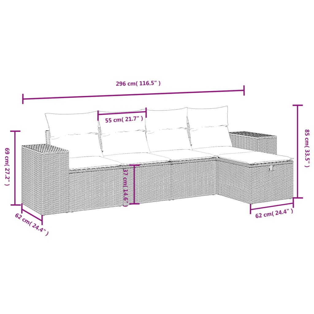 Diese Garten-Sofagarnitur ist die perfekte Ergänzung zu deinem Garten, deiner Terrasse oder deinem Innenhof. Sie bietet einen bequemen und einladenden Platz, um mit Familie und Freunden zu plaudern oder dich einfach nur zu entspannen und das Leben im Freien zu genießen. Langlebiges Material: PE-Rattan, auch als Poly Rattan bekannt, ist ein robustes, pflegeleichtes synthetisches Material, das die Optik von natürlichem Rattan aufweist. Es kennzeichnet sich durch ein geringes Eigengewicht und lässt sich einfach reinigen. Aufgrund seiner Haltbarkeit und Witterungsbeständigkeit wird es häufig bei der Herstellung von Gartenmöbeln verwendet.Bequemes Sitzerlebnis: Dieser Gartensessel mit dick gepolsterten Kissen bietet ein angenehmes Sitzgefühl.Abnehmbarer und waschbarer Bezug: Diese Sitzkissen verfügen über abnehmbare Bezüge für einfaches Waschen und Pflegen.Robuster und stabiler Rahmen: Dank des pulverbeschichteten Stahlrahmens ist das Möbelstück robust, stabil und für den täglichen Einsatz im Außenbereich geeignet.Modulares Design: Dank des modularen Designs lassen sich die Gartenmöbel völlig flexibel und einfach umstellen, um deinen Außenbereich ganz individuell zu gestalten. Gut zu wissen:Wir empfehlen dir, deine Gartenmöbel mit einer wasserdichten Hülle zu schützen, um lange Zeit eine ansprechende Optik aufzuweisen.