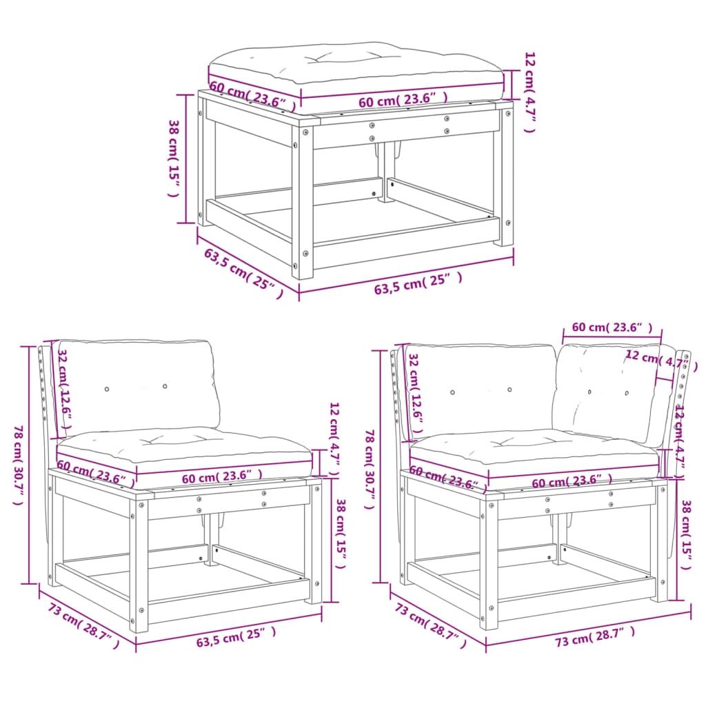 Diese Garten-Sofagarnitur ist die perfekte Ergänzung zu deinem Garten, deiner Terrasse oder deinem Innenhof. Sie bietet einen bequemen und einladenden Platz, um mit Familie und Freunden zu plaudern oder dich einfach nur zu entspannen und das Leben im Freien zu genießen. Massives Kiefernholz: Massives Kiefernholz ist ein wunderschönes Naturmaterial. Kiefernholz weist eine gerade Maserung auf und die Aststellen verleihen dem Material seine charakteristische, rustikale Optik.Bequemes Sitzerlebnis: Mit Rückenlehnen und dick gepolsterten Kissen versehen, bietet dieses Möbelstück ein komfortables Sitzerlebnis.Latten-Design: Das Latten-Design verhindert effektiv die Ansammlung von Wasser, sodass die Sitzfläche trocken bleibt und Holzfäule verhindert wird.Modulares Design: Dank des modularen Designs lassen sich die Gartenmöbel völlig flexibel und einfach umstellen, um deinen Außenbereich ganz individuell zu gestalten. Gut zu wissen:Wir empfehlen dir, deine Gartenmöbel mit einer wasserdichten Hülle zu schützen, um lange Zeit eine ansprechende Optik aufzuweisen.
